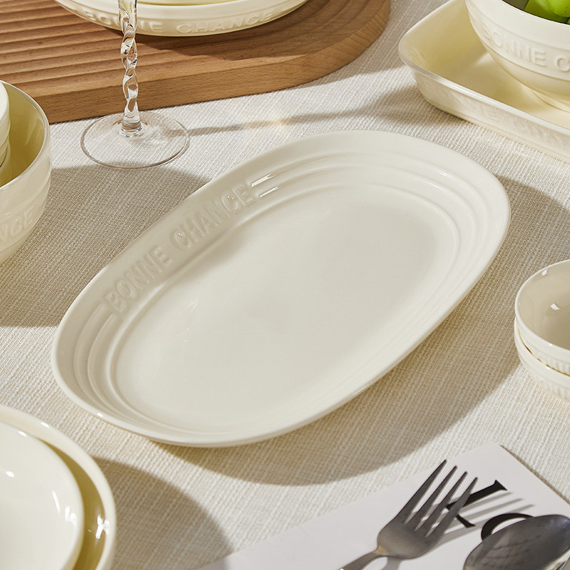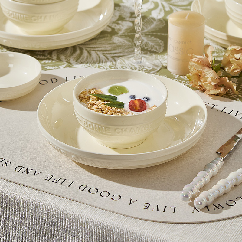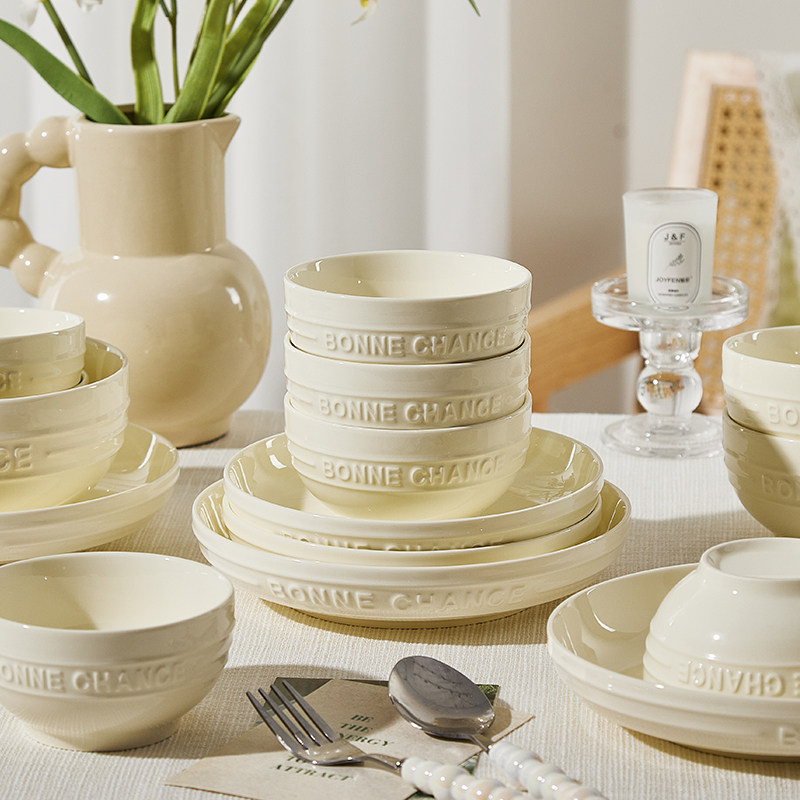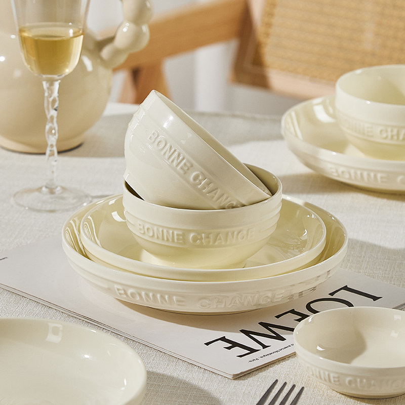 陶瓷盘子家用2026新款高颜值深盘好看的奶油风餐盘浮雕碗碟饭碗
