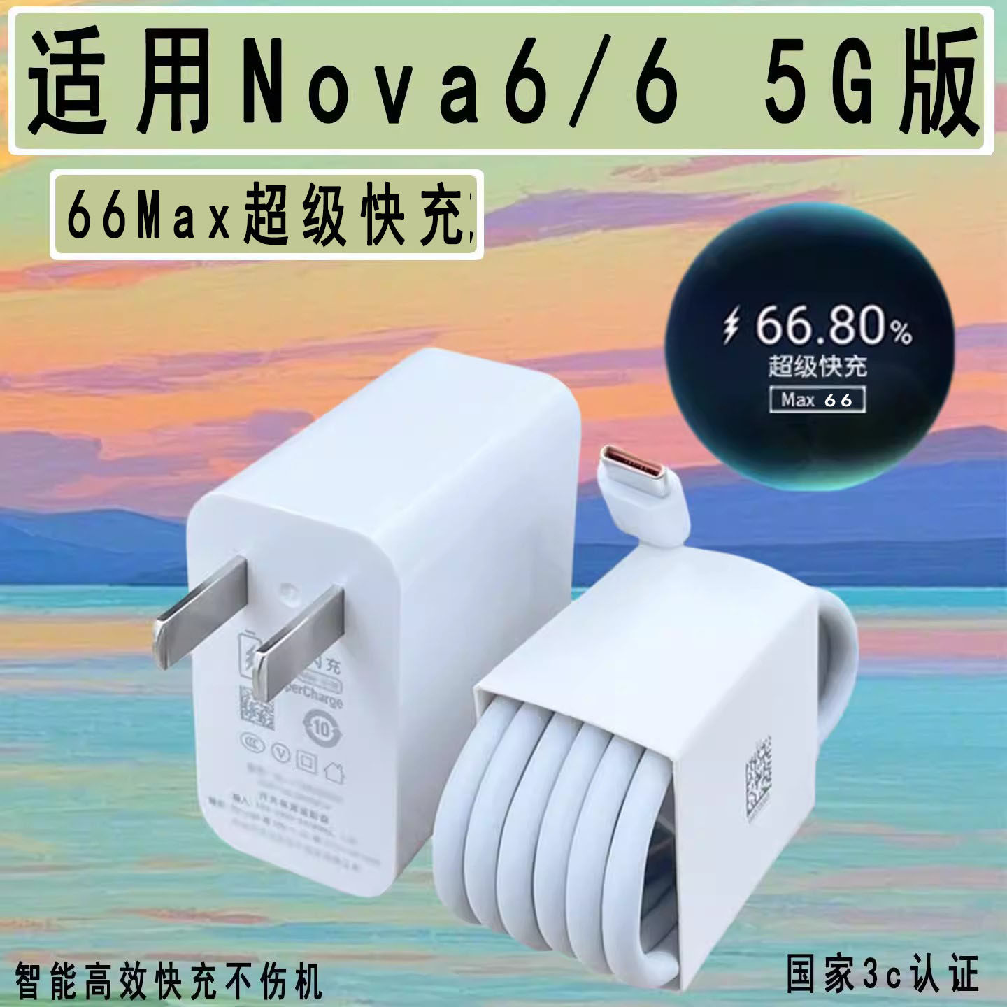 适用华为Nova6手机充电器头max66超级快充5G版会岛原装充电头数据线