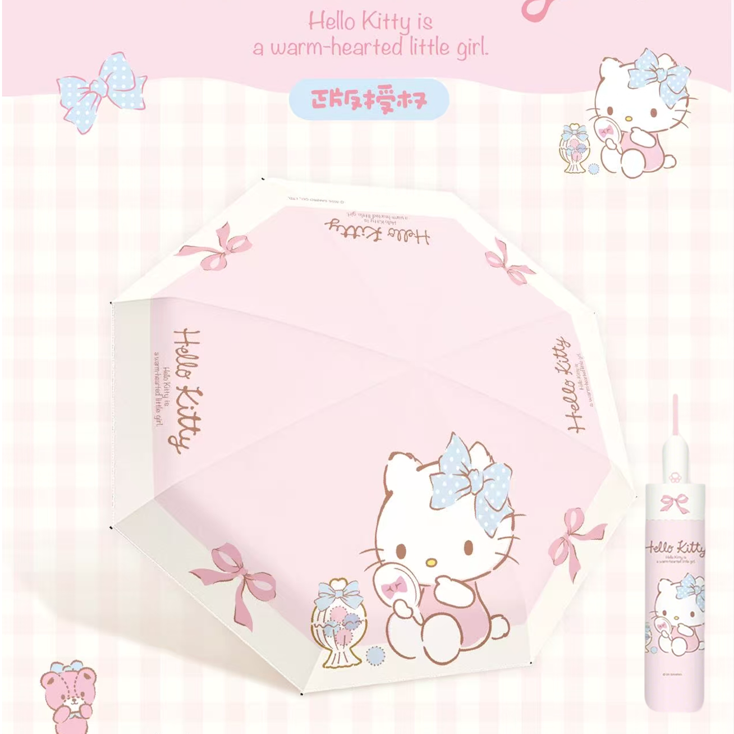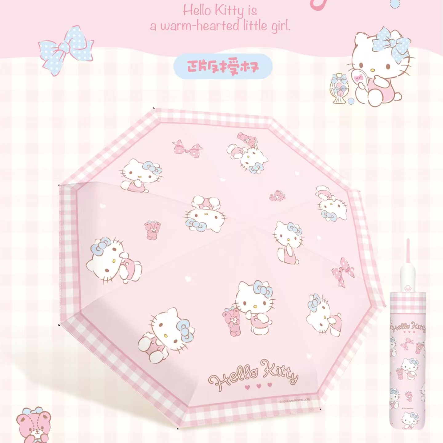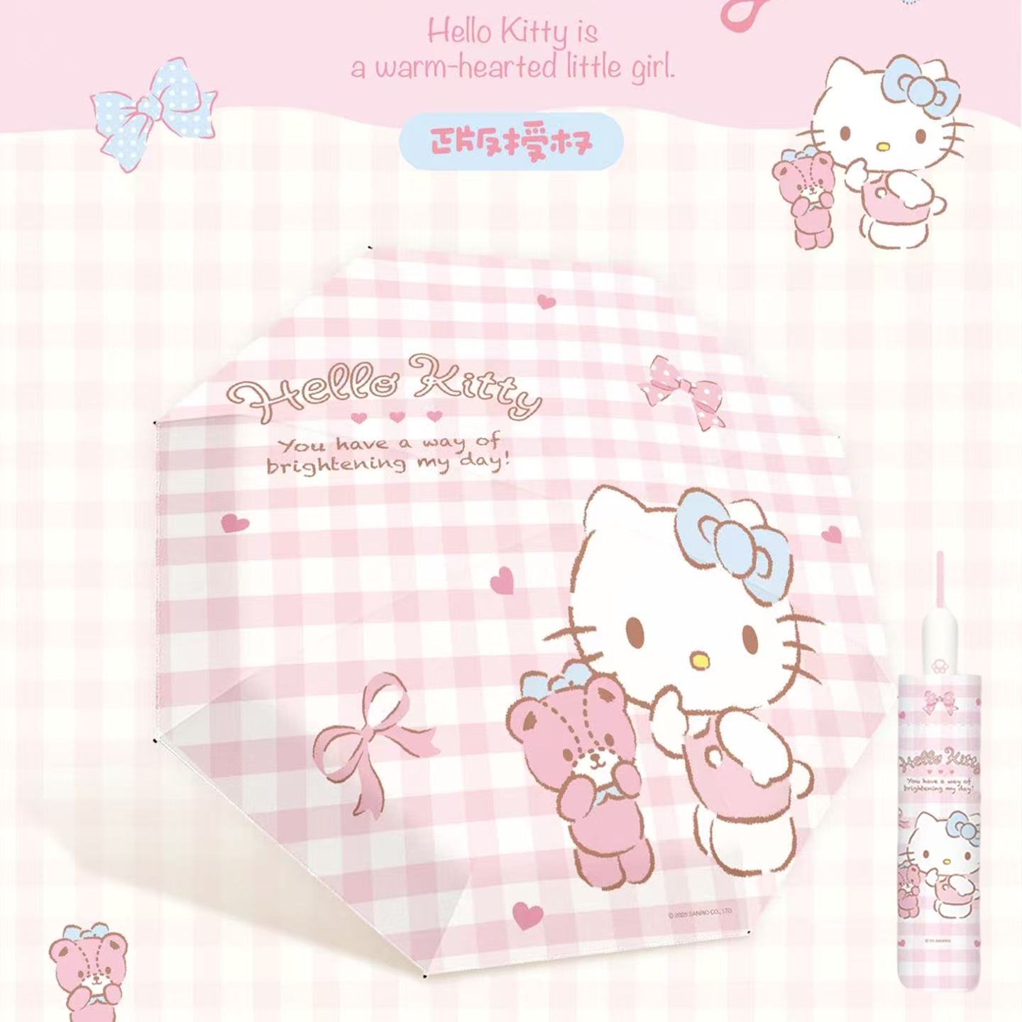 三丽鸥凯蒂猫三折自动伞防雨防潮防紫外线黑胶晴雨两用伞