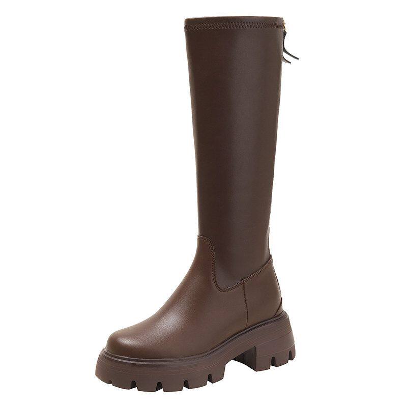 幂琳小个子粗跟长靴女厚底内增高圆头高筒骑士靴长筒靴子2025新款