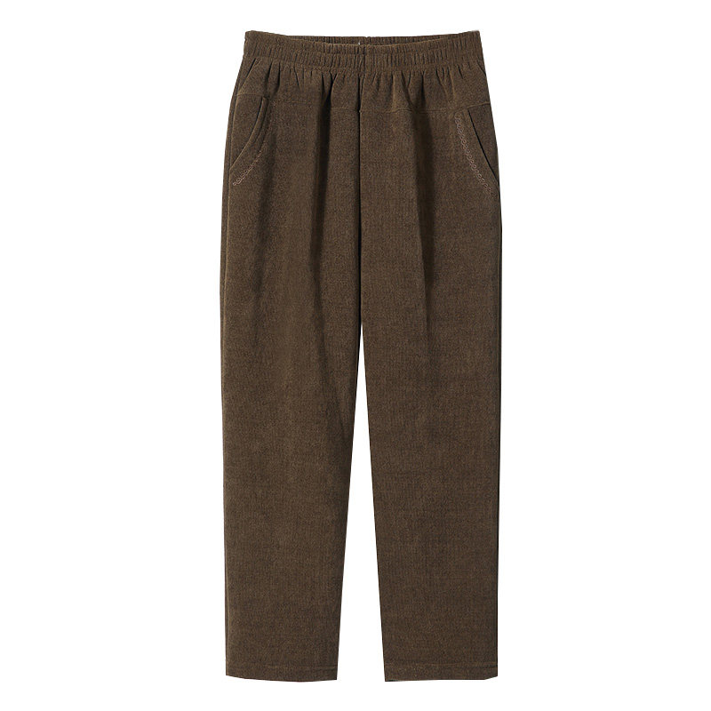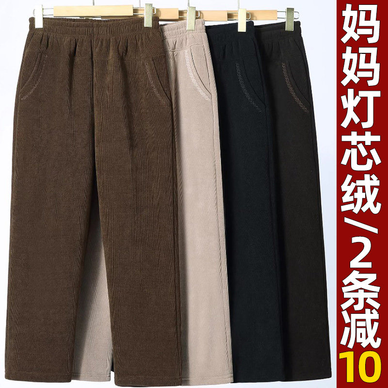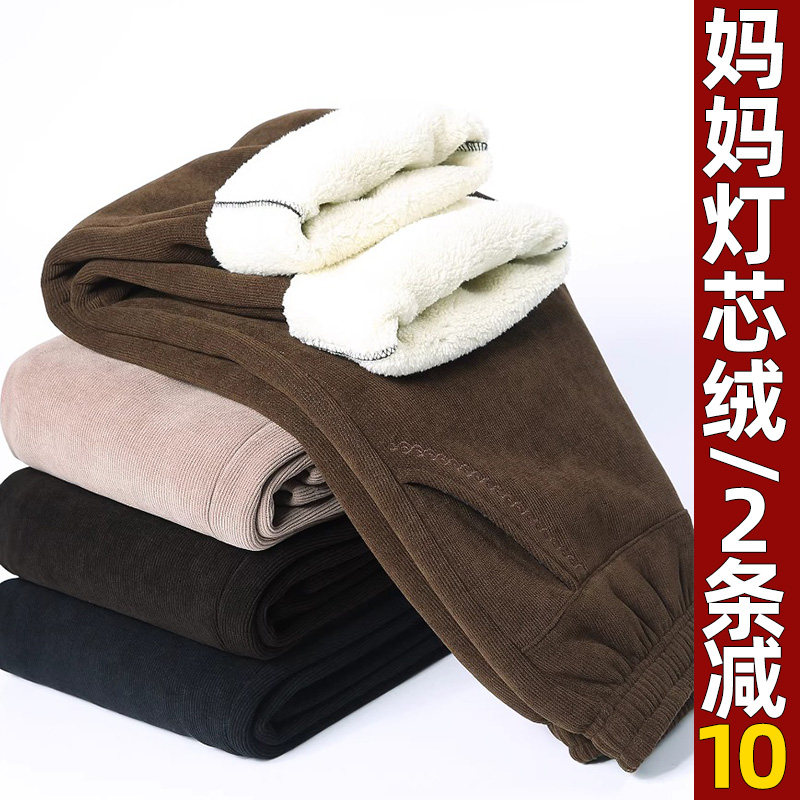 妈妈秋冬灯芯绒裤子宽松高腰加绒厚棉裤秋冬外穿中老年人女裤春秋