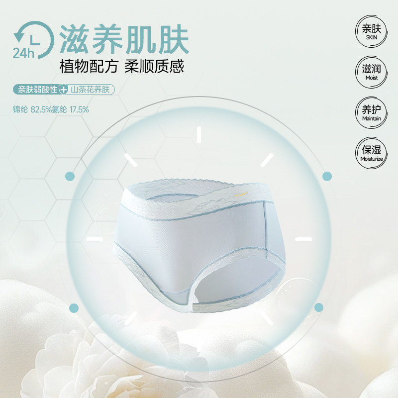 【4条装】Kissy氧心轻薄透气中腰蕾丝面膜舒适亲肤抑菌女式三角裤