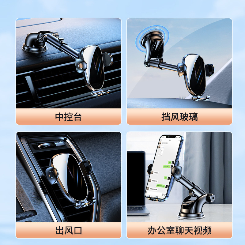 真空吸附磁吸车载手机支架2025新款吸盘车内导航手机架magsafe无线磁吸伸缩折叠便携架子墙壁通用神器