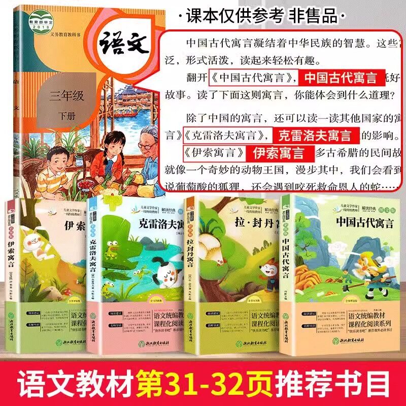 中国古代寓言故事三年级下册课外书必读快乐读书吧全套伊索寓言三年级必读课外阅读书籍原著正版克雷洛夫寓言拉封丹寓言老师推荐