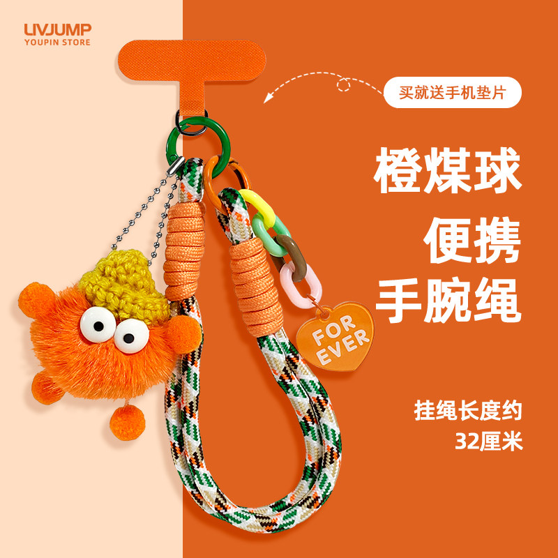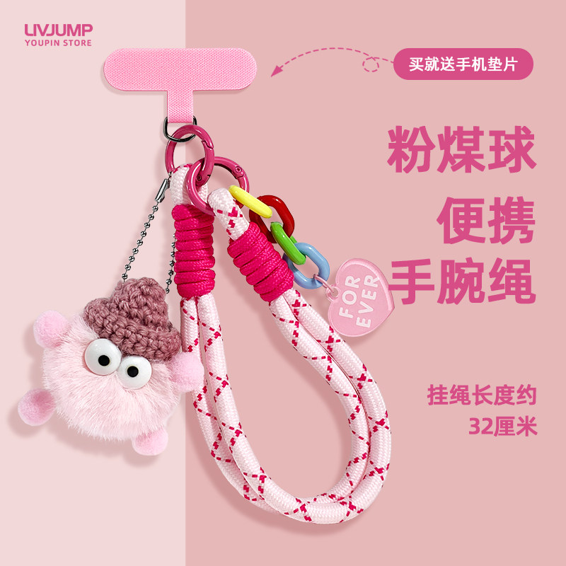 新款公仔手机挂绳短款编织手绳防丢防盗卡通毛球可挂手机壳链垫片