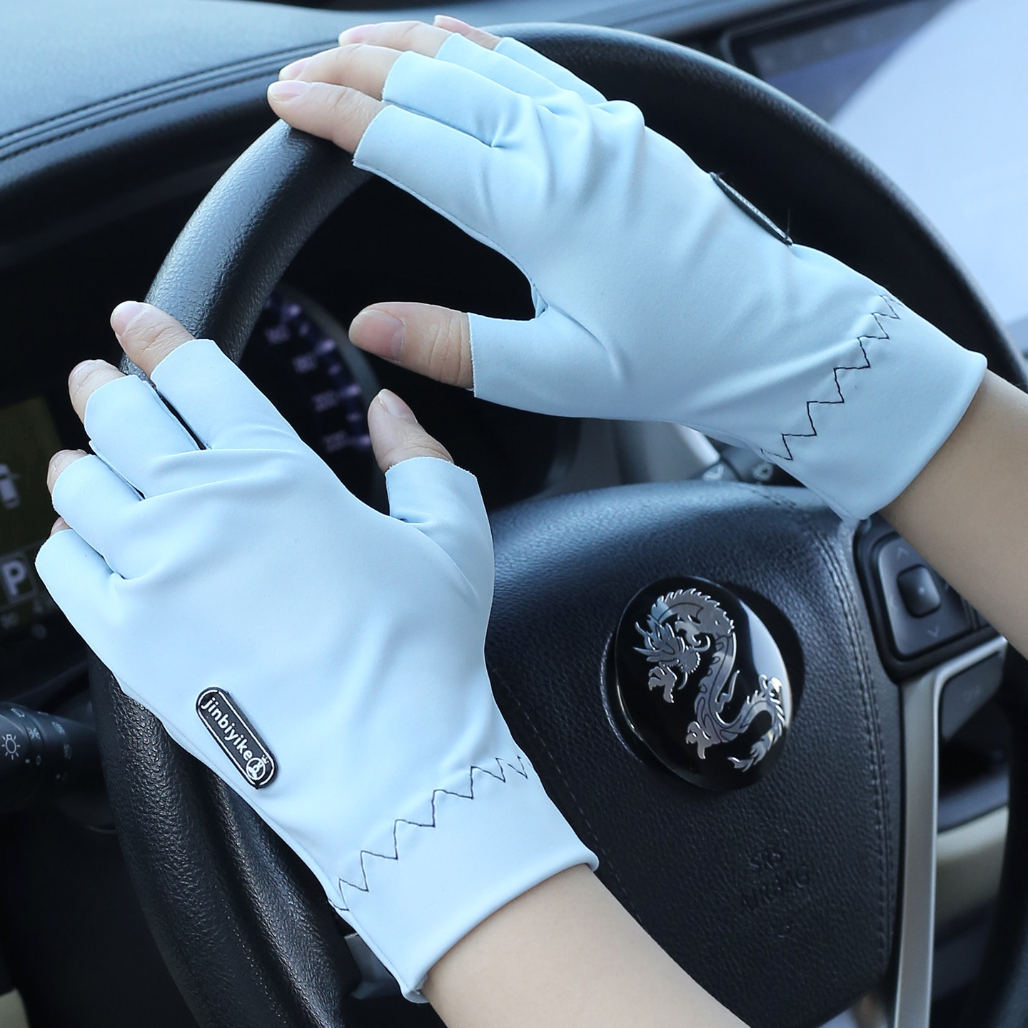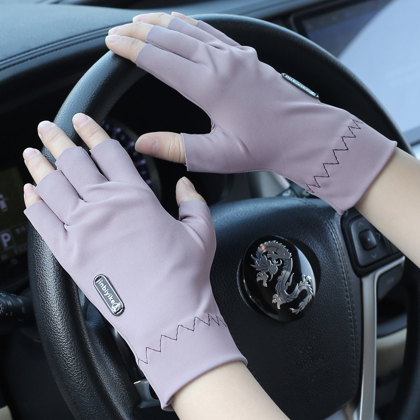 防晒手套女防紫外线冰丝露二指夏季户外电动车骑行开车手套女薄款