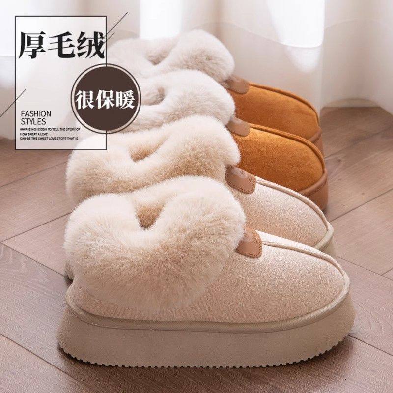 秋冬季2025新款翻半包跟棉拖加绒保暖情侣外穿毛毛绒厚底防滑居家