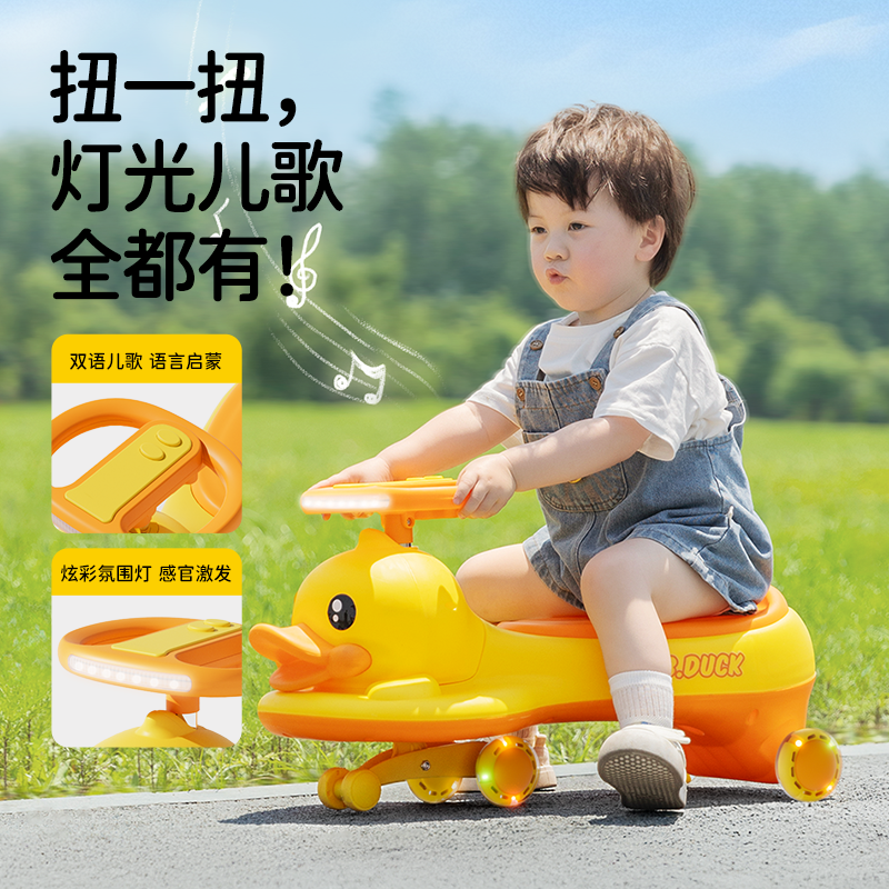 小黄鸭扭扭车儿童防侧翻溜溜车宝宝1岁摇摇大人可坐双人圣诞礼物
