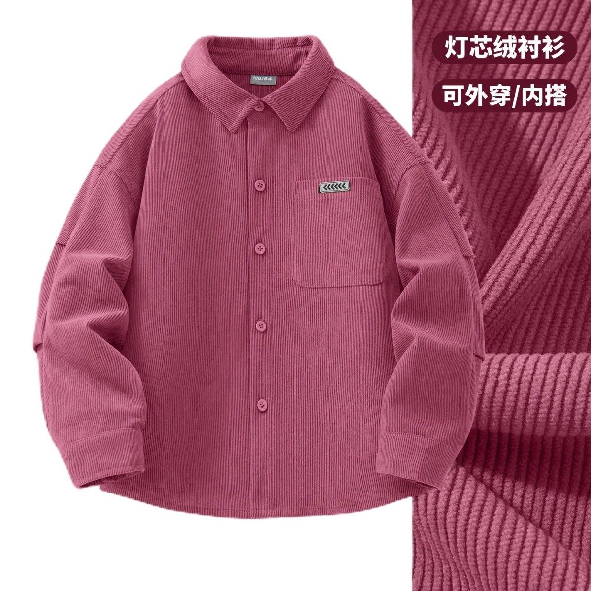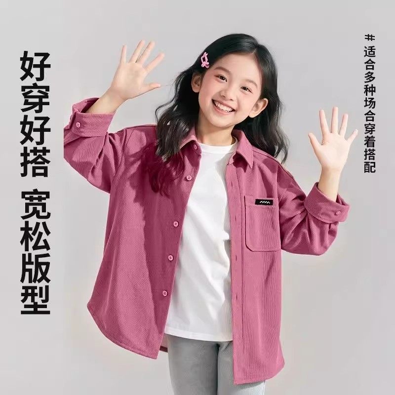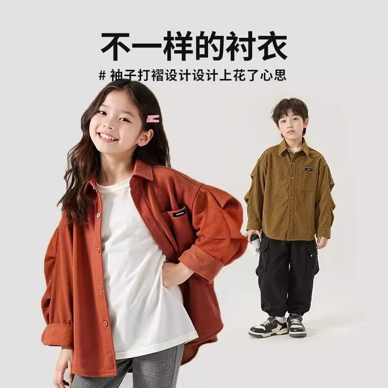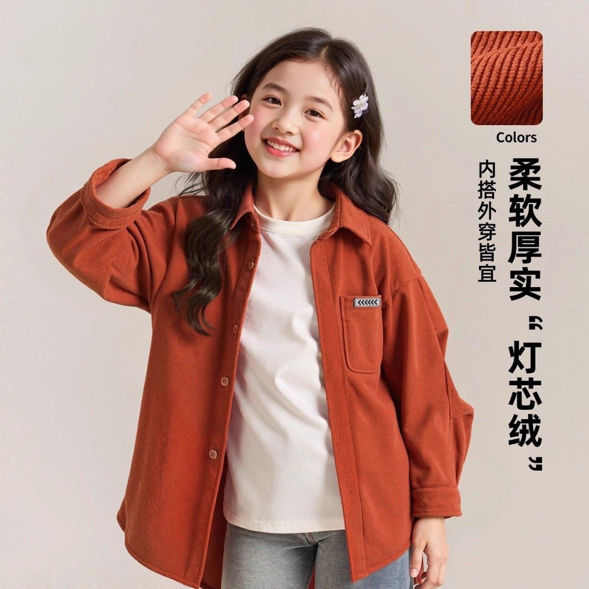 女童衬衫外套2025新款复古时尚春秋灯芯绒衬衣女大童长袖儿童上衣