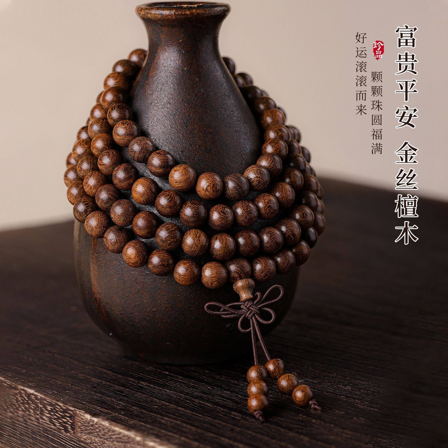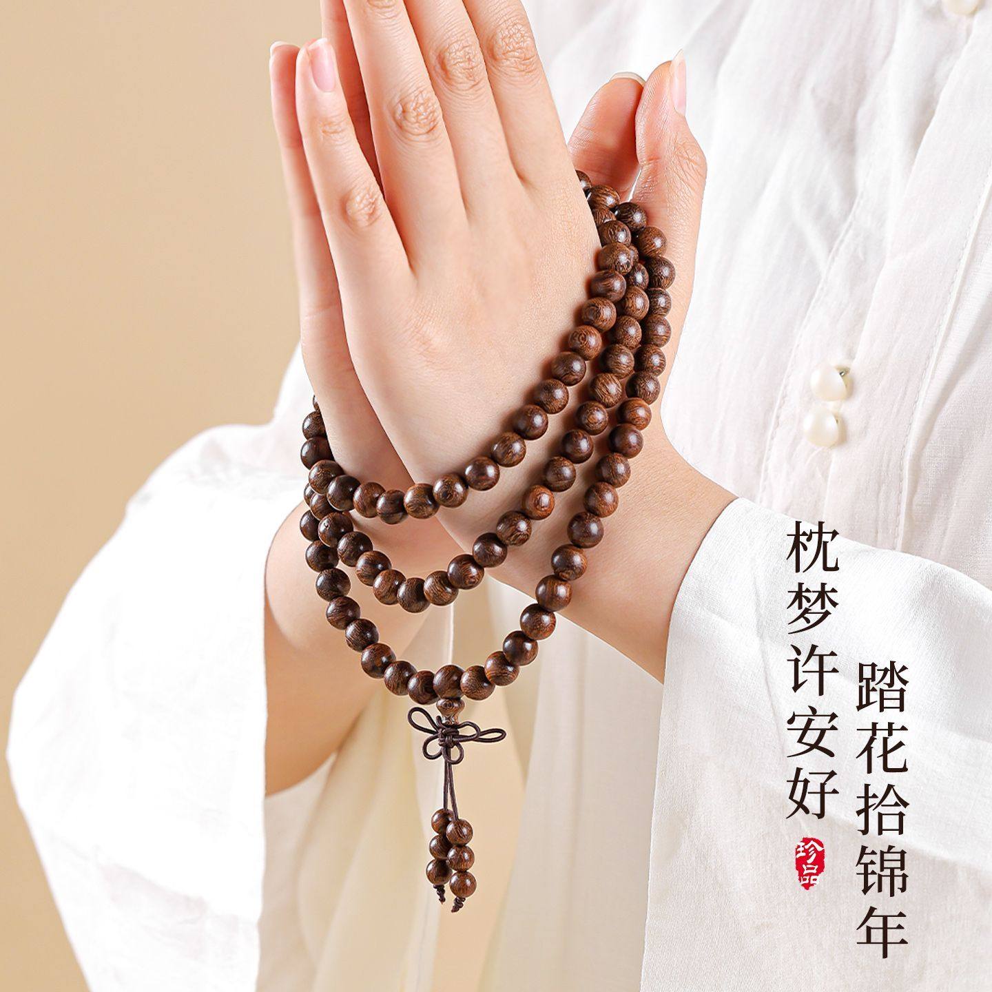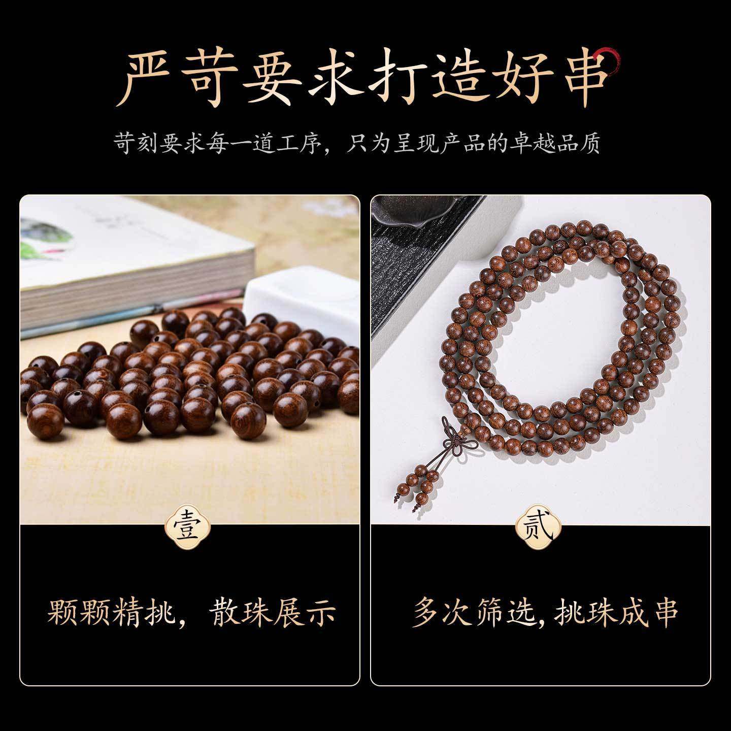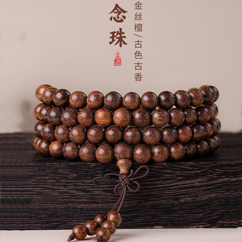 金丝檀多圈叠戴佛珠手串木质盘玩女士文玩男款檀香挂脖念珠手链男