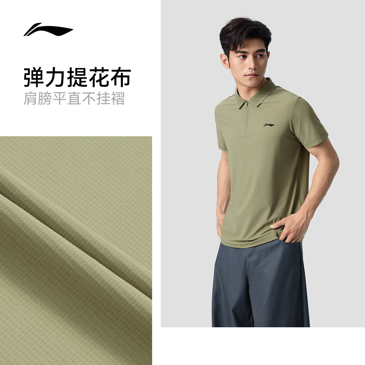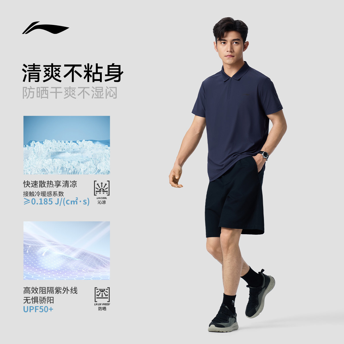 李宁冰感POLO衫男士春夏2026新款健身防晒上衣翻领T恤男运动短袖