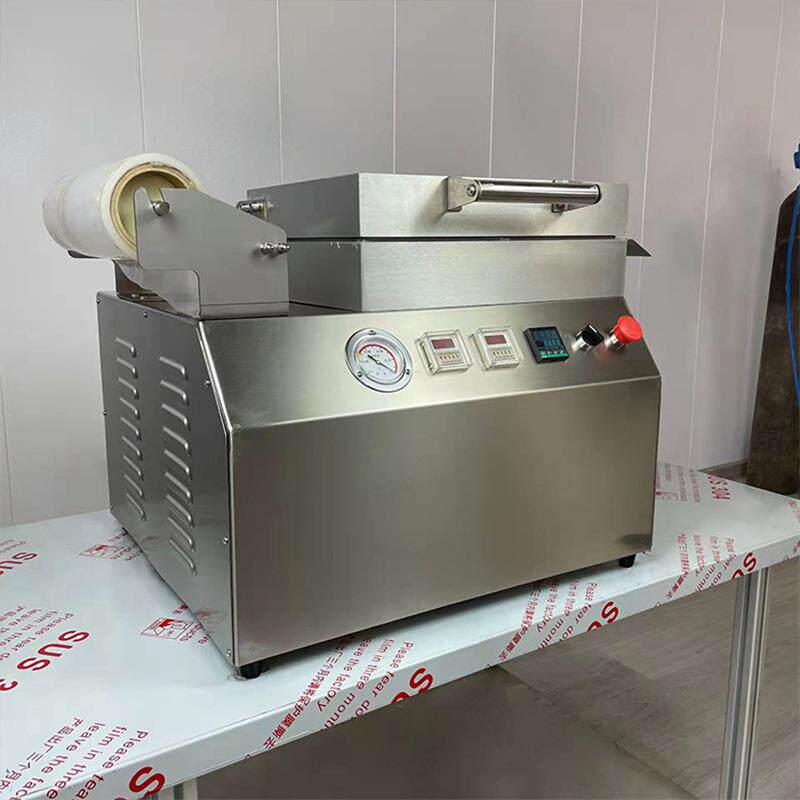 多功能牛排真空贴体机银鳕鱼三文鱼托盘纸板覆膜机鱼块立体包装机