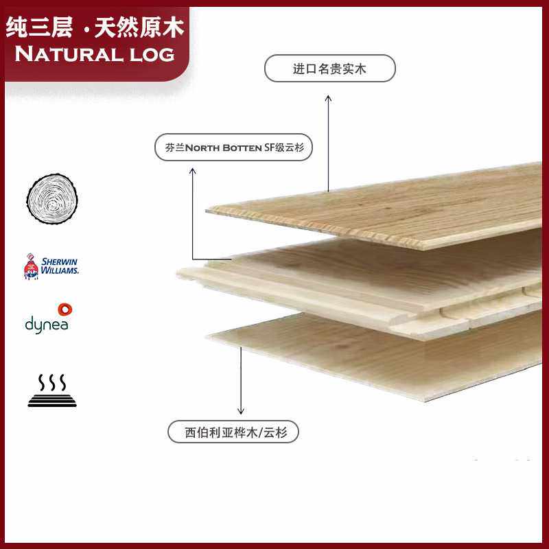 白欧橡纯三层实木地板中古风胡桃咖复合锁扣地暖ENF环保15mm大板