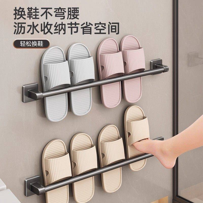 浴室壁挂拖鞋架免打孔卫生间置物架收纳神器厕所沥水挂架鞋子简约