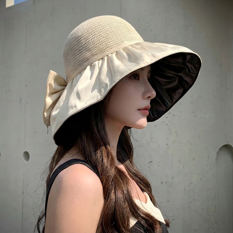2026新款防晒帽女夏季遮阳大檐渔夫帽蝴蝶结防紫外线黑胶太阳帽潮