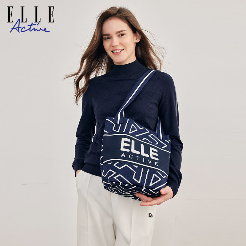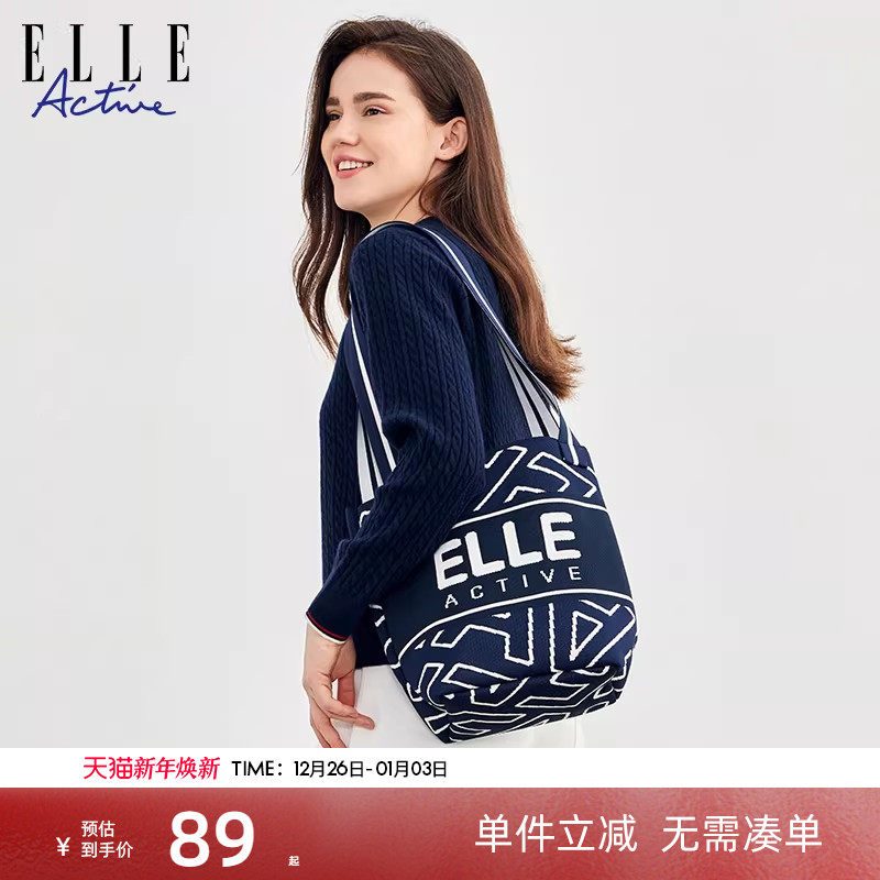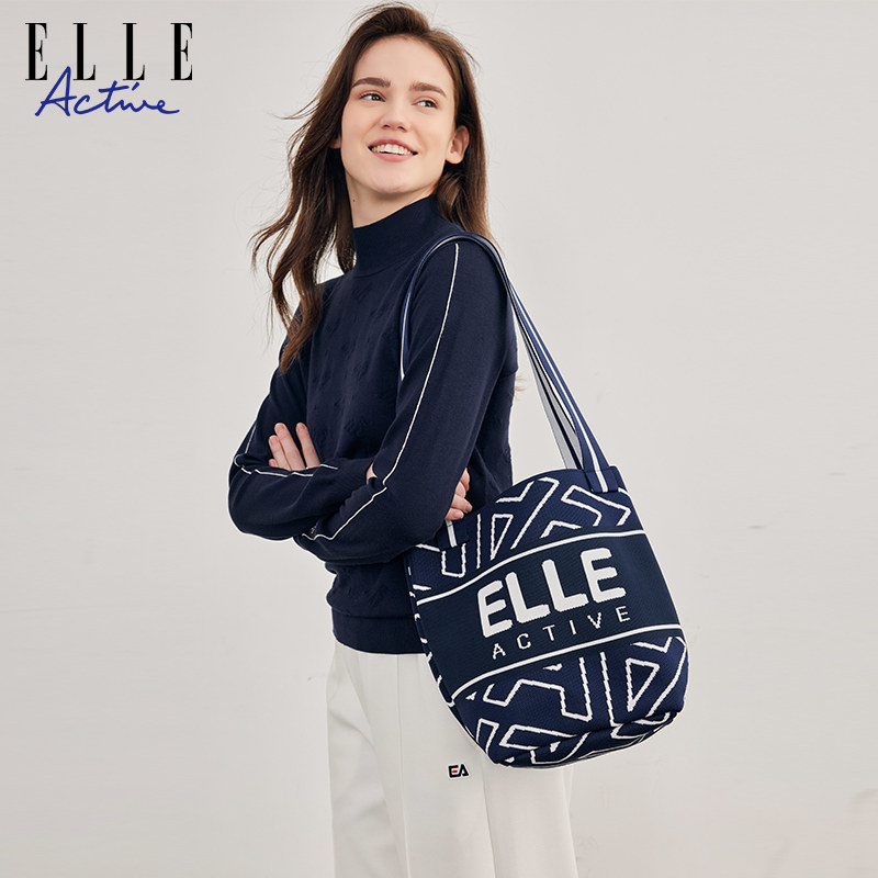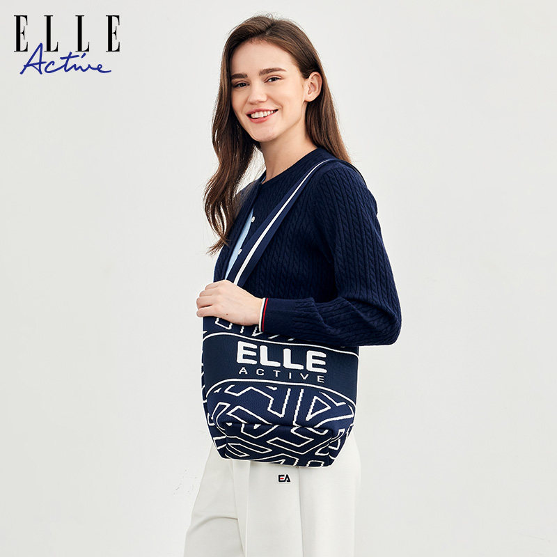 ELLE Active时尚百搭针织单肩包大容量手提袋水桶包设计感托特包