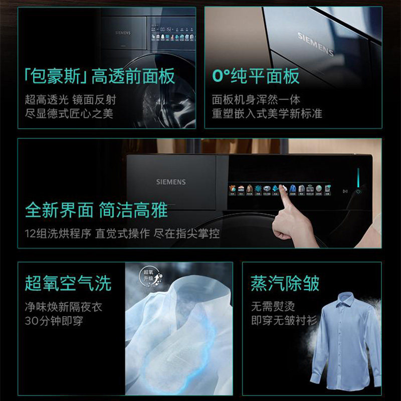 【新品首发WG54M7D20W 】西门子包豪斯平嵌款10kg超氧滚筒洗衣机
