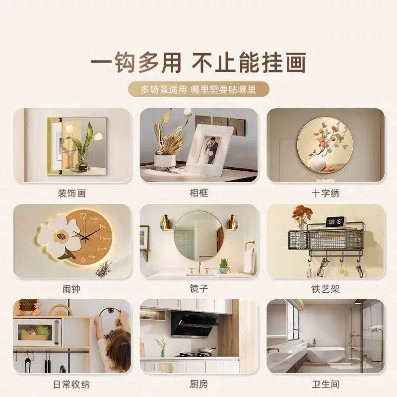 专用挂画神器免打孔强力挂钩无痕免钉贴相框挂墙挂钉固定器厨房