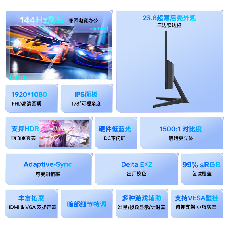 雷神显示器23.8英寸144Hz办公电竞笔记本外接电脑屏幕JF24F144
