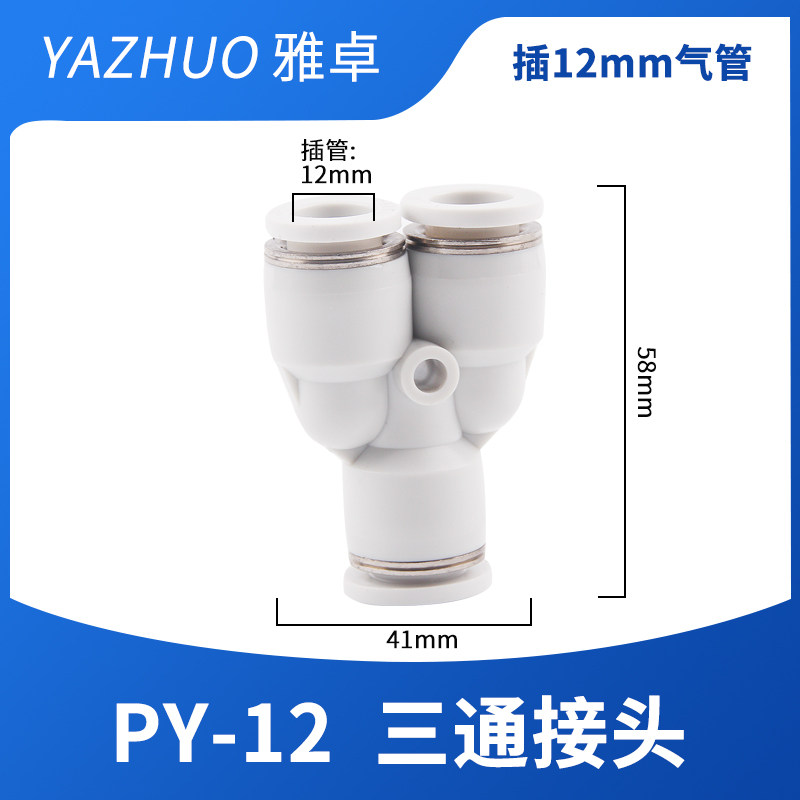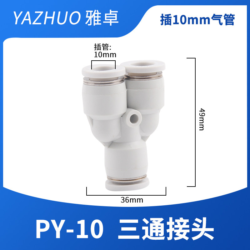 白色亚德客型PY6气管快速插接头PY8 Y型三通气动元件快插高压软管
