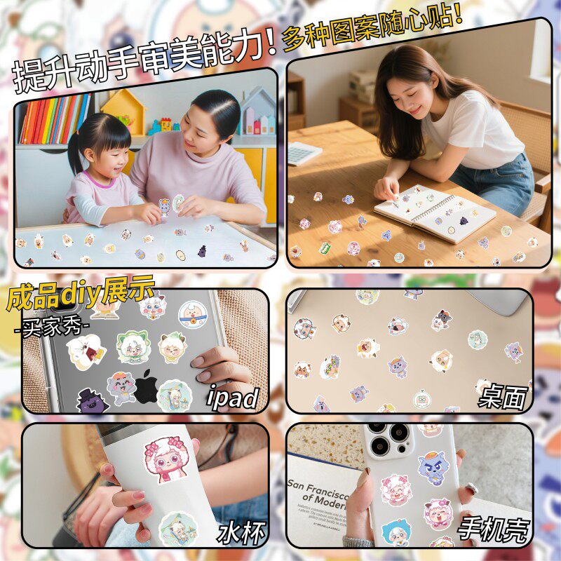 萌崽新款学霸学渣果冻贴纸安静书儿童免裁剪手工粘贴DIY女孩趣味玩具