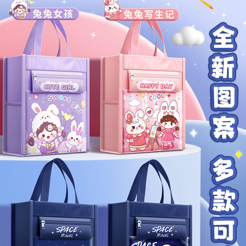 儿童手提补习袋学生拎书高颜值男孩女童用书包文件袋帆布美术袋补习班作业文件试卷袋收纳袋补课包儿童学习