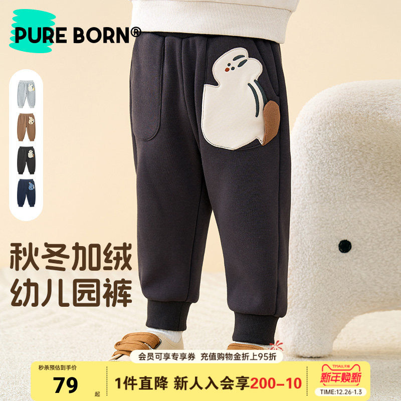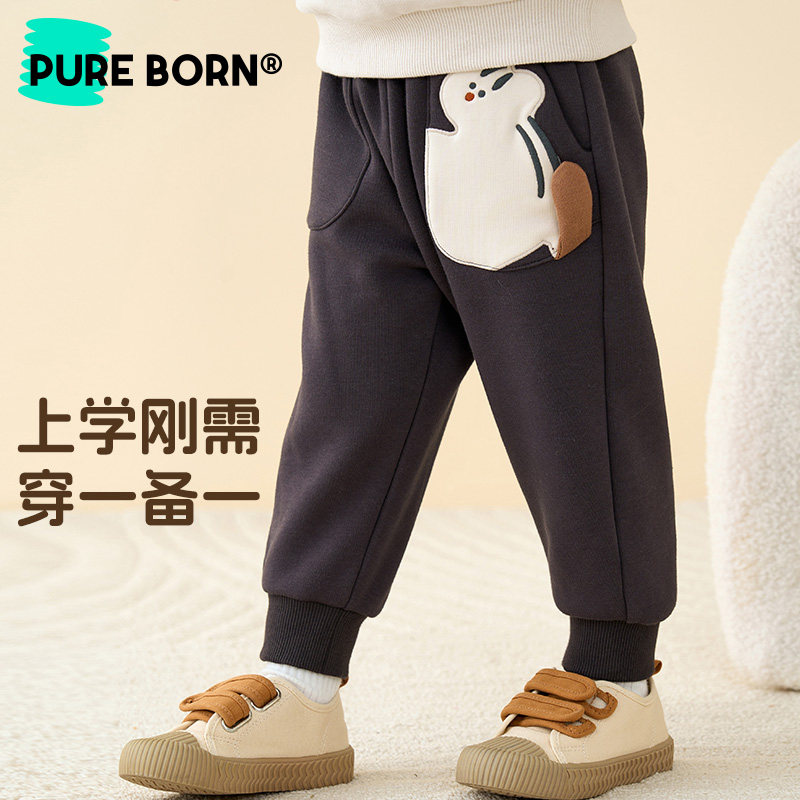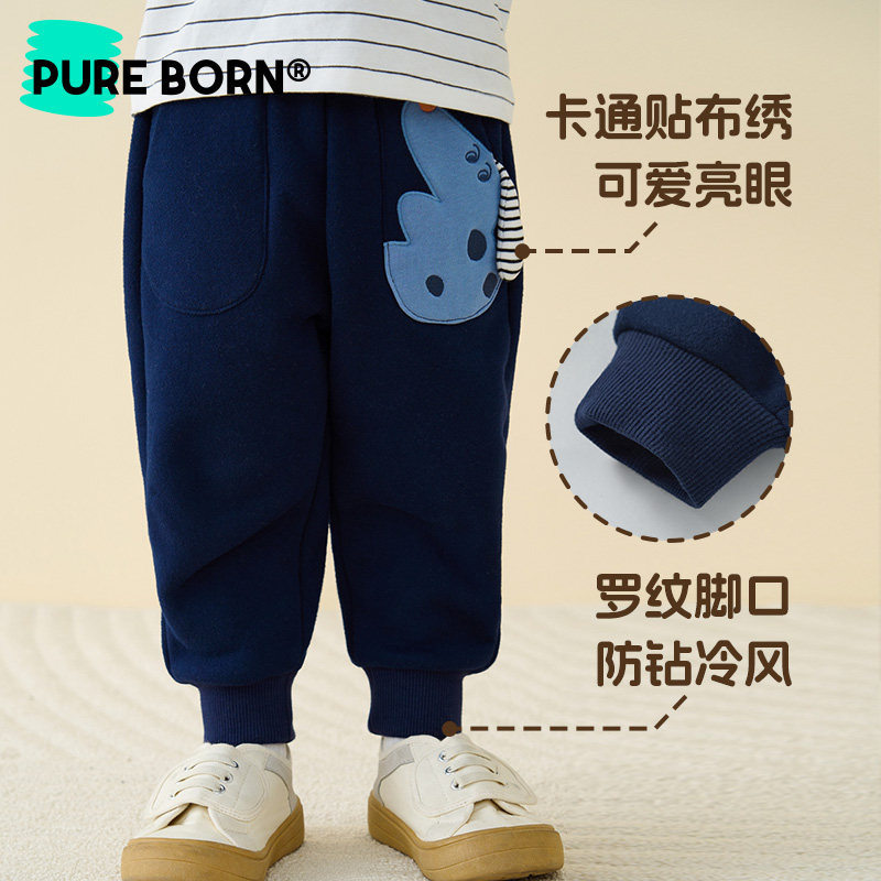 博睿恩男女宝宝长裤子秋冬装婴幼儿童加绒保暖可爱造型百搭裤子