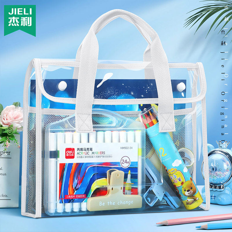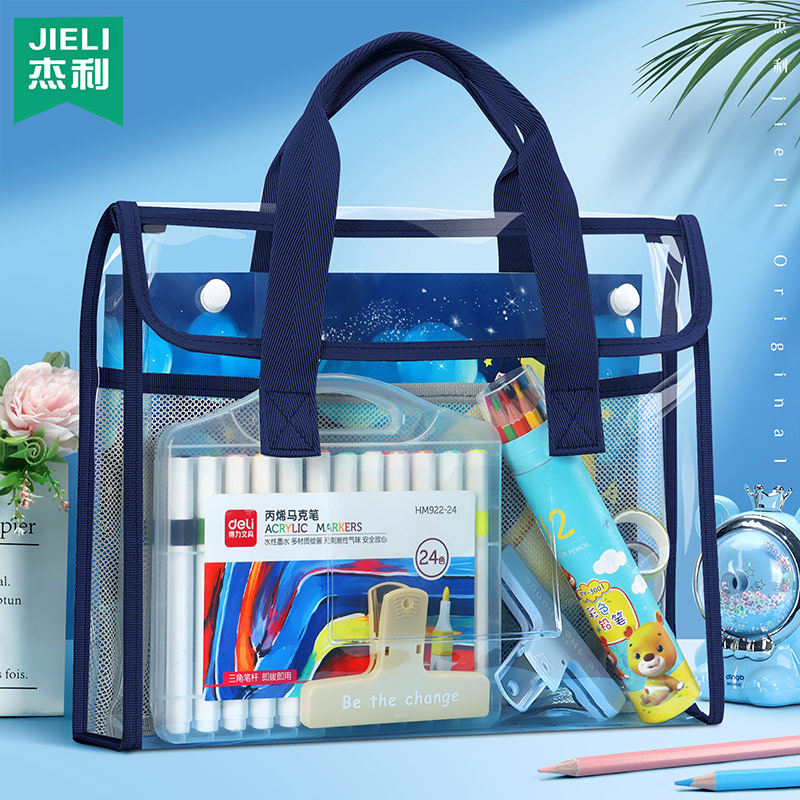 杰利补习袋手提袋拎书袋小学生用男孩女童书包文件袋PVC书法包美术袋画画专用收纳工具套装收纳袋定制logo