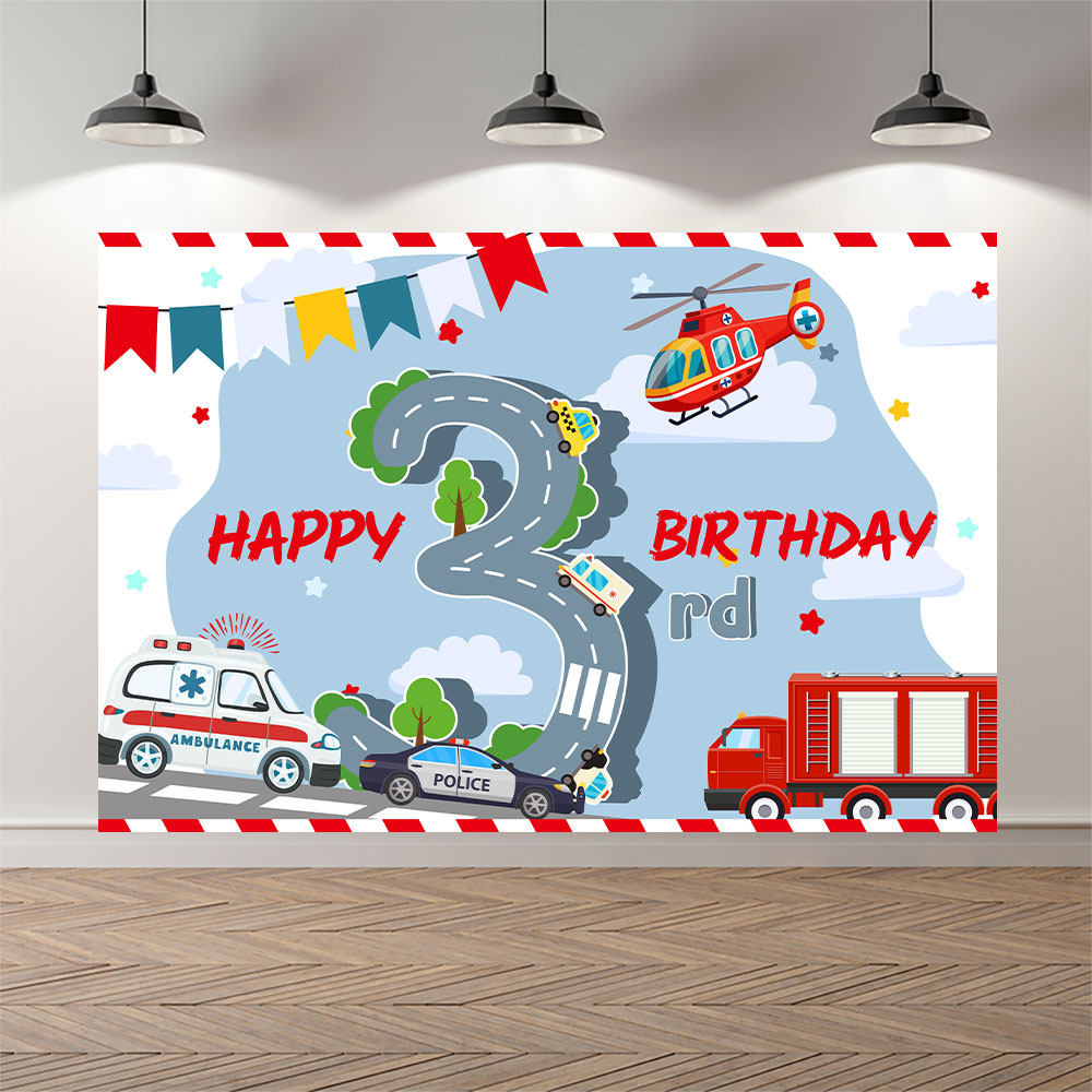 消防车警车救护车卡通小汽车背景布儿童生日活动布置装饰背景布
