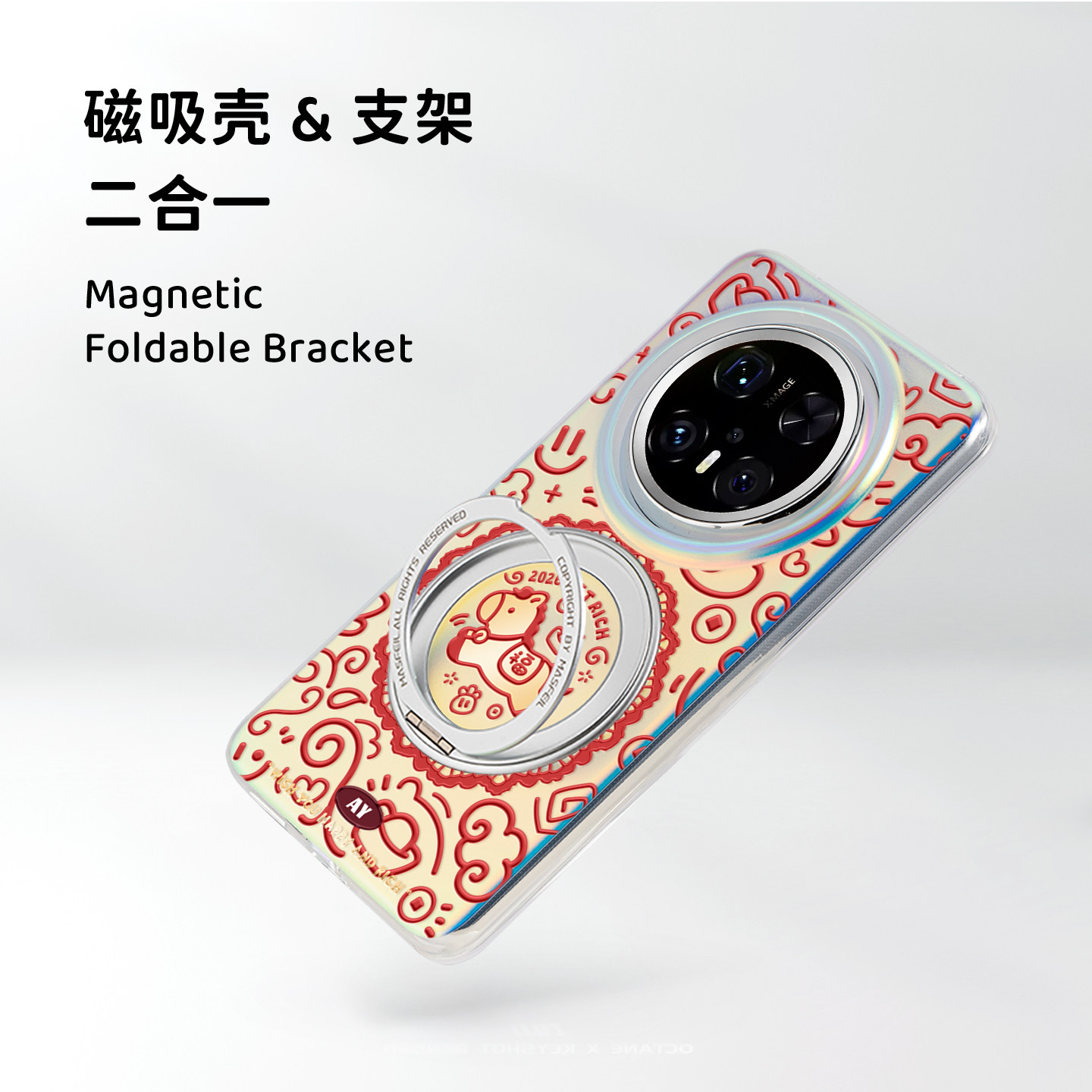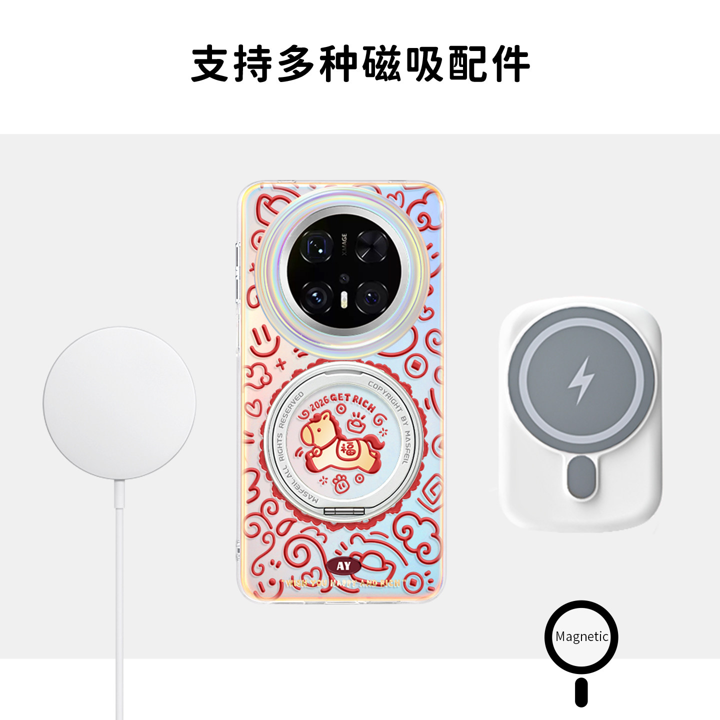 ANGYING × 福马纳财适用华为Mate80Promax手机壳磁吸支点Lo5新款女mate60全包新年红色mt70带支架por+高级套