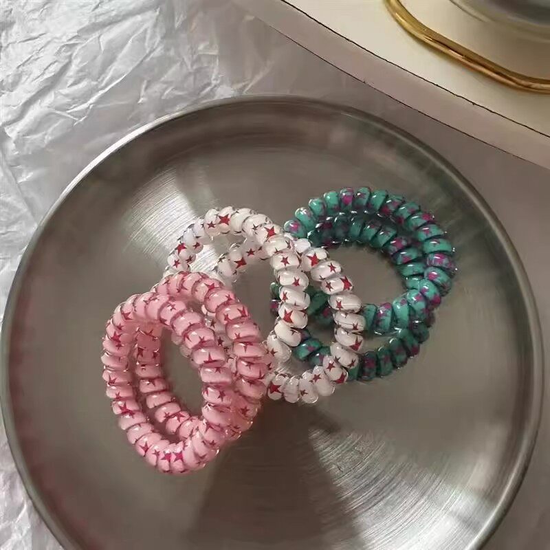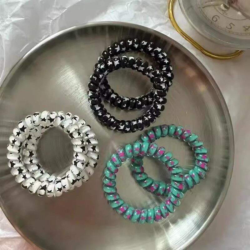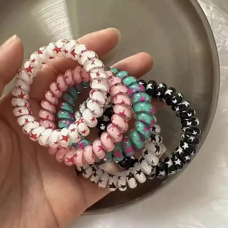 甜酷星星韩版五角星无痕发绳学院风甜妹电话线发圈扎头发皮筋发饰