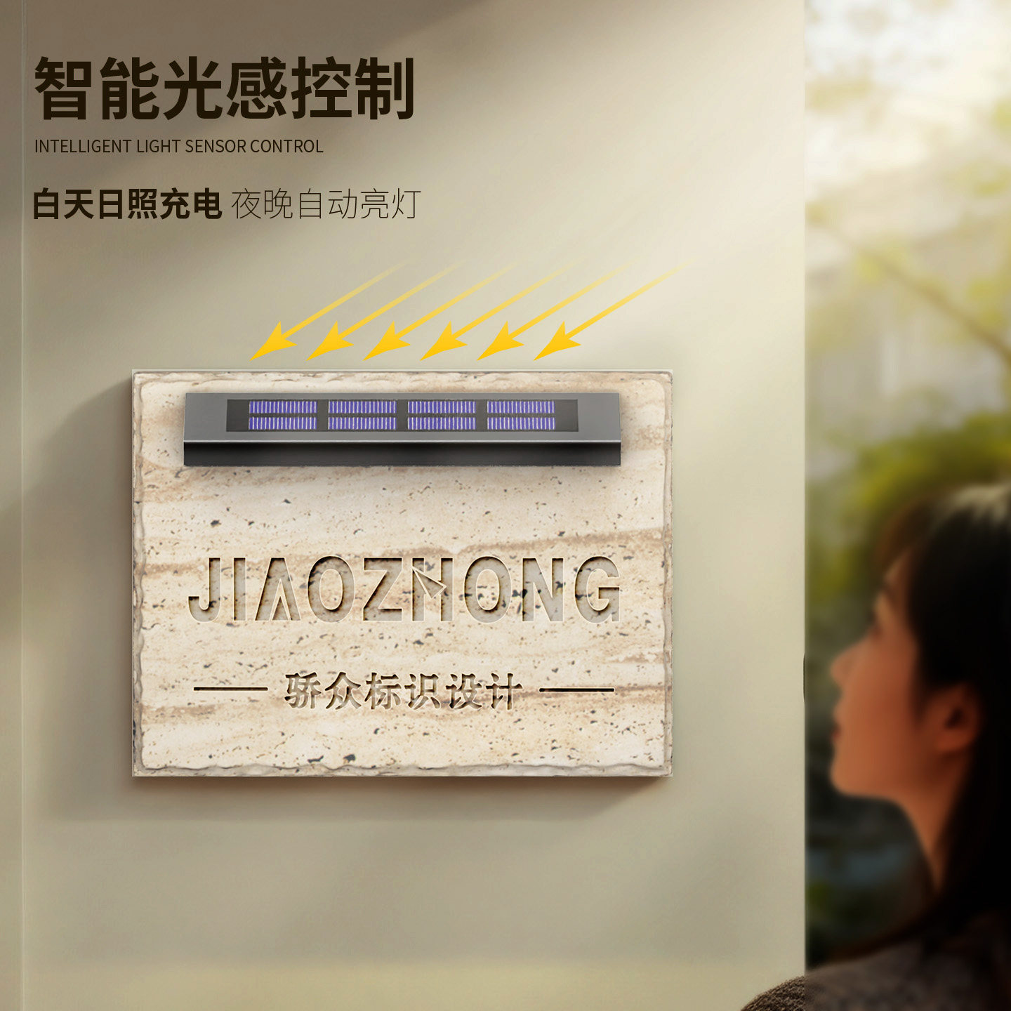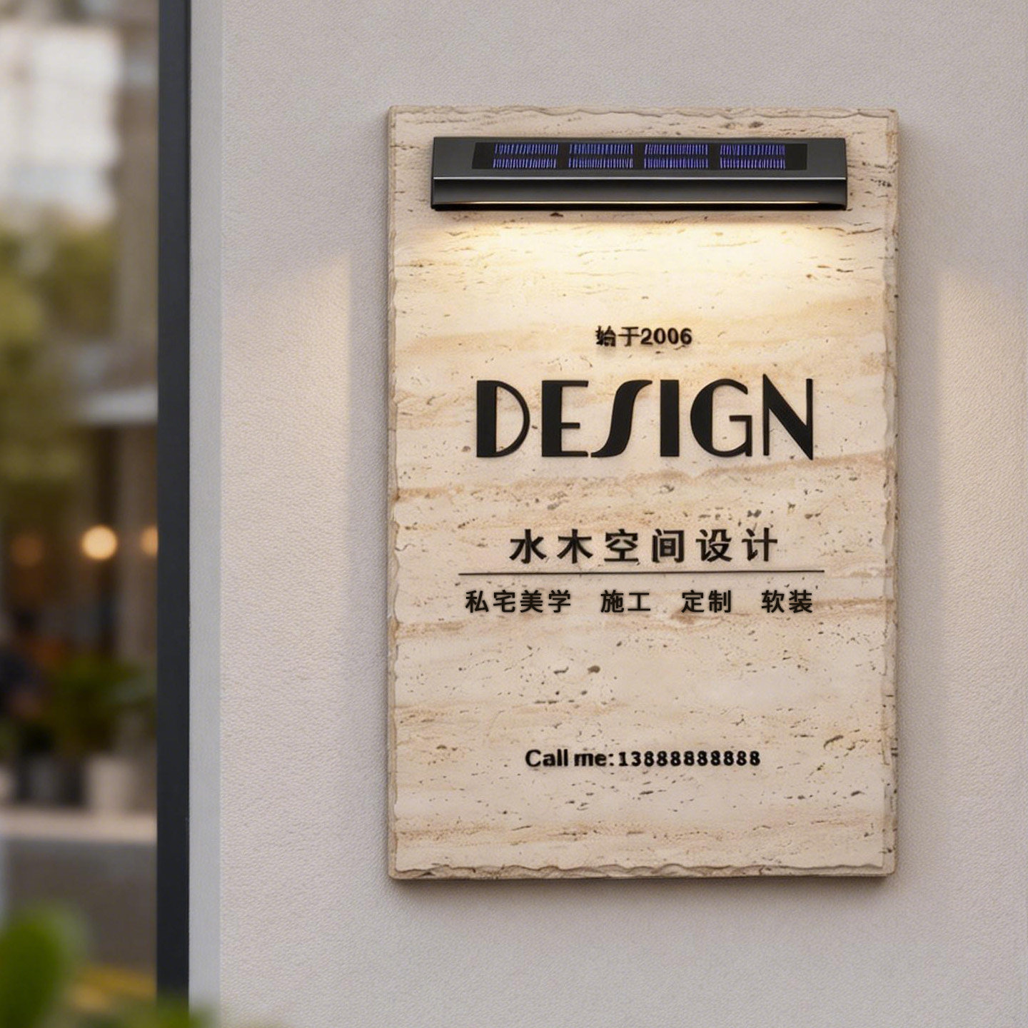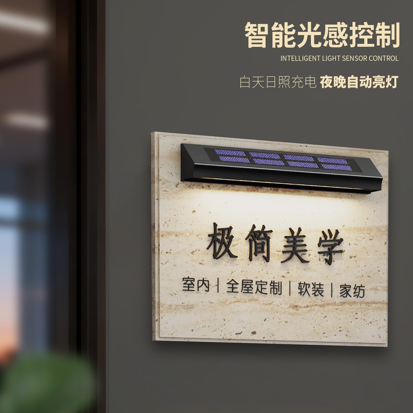 户外太阳能门牌灯室外防水LOGO牌定制门牌石广告牌公司店铺装饰牌大门口墙面招牌大理石天然洞石标识展示牌