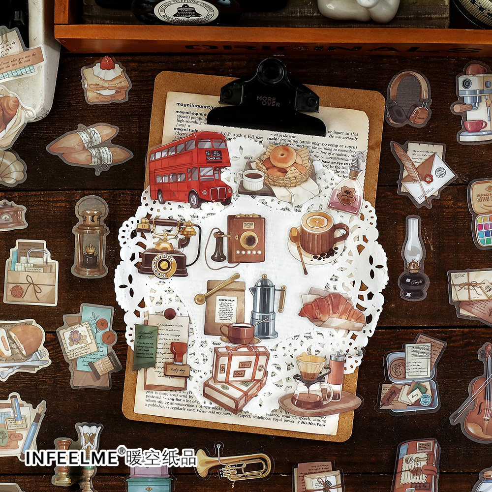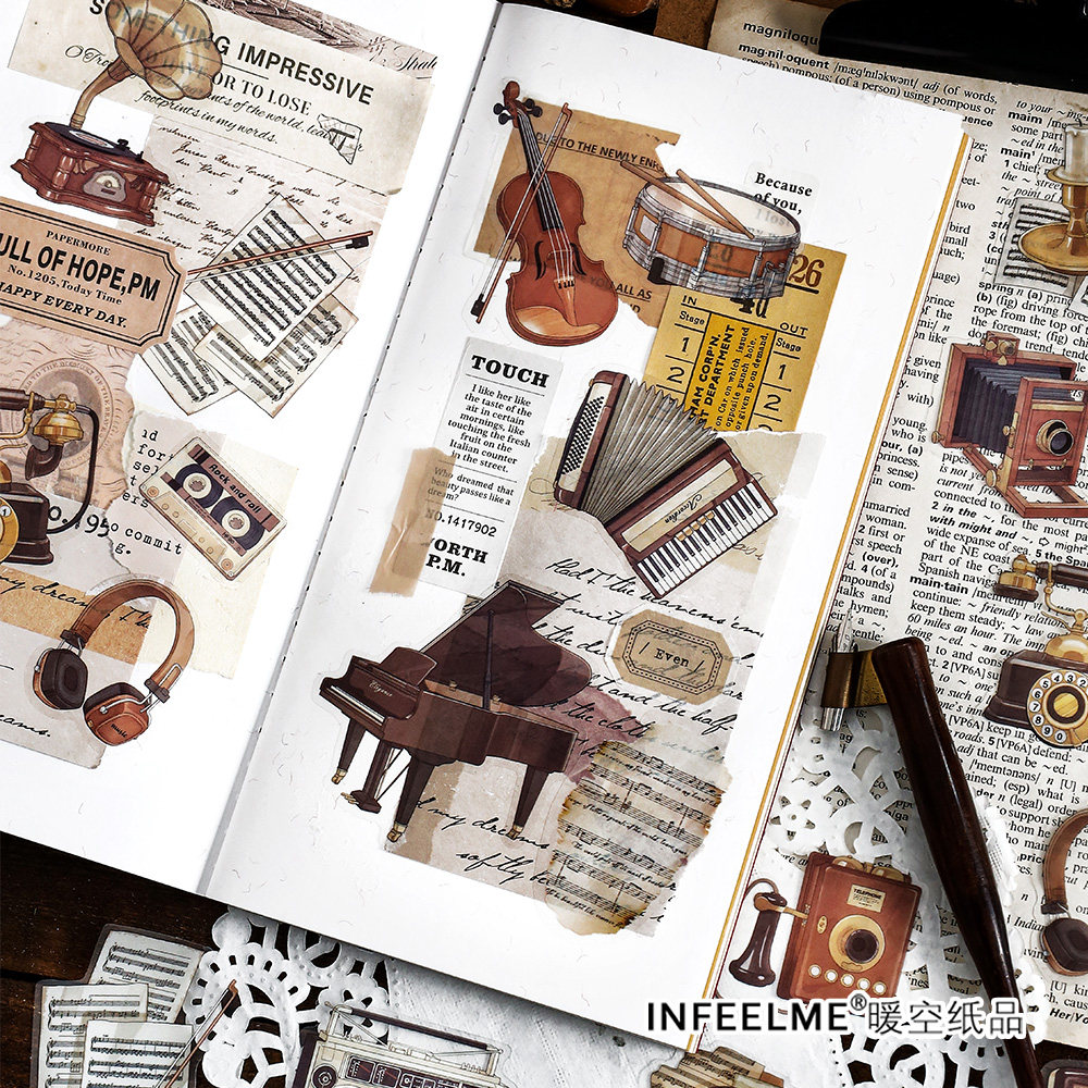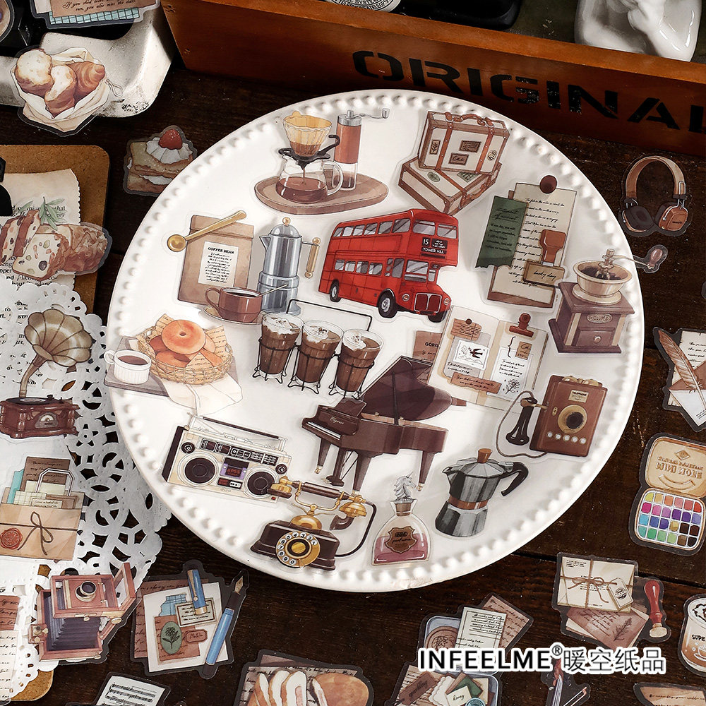 Infeel.Me PET贴纸包时光暗恋 复古美食书籍乐器图鉴手帐打底贴