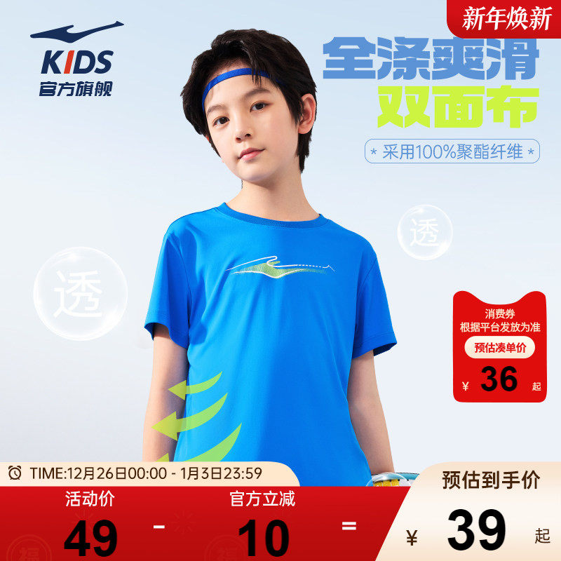 鸿星尔克童装儿童短袖T恤夏季新款男童运动速干衣夏装薄款上衣短t