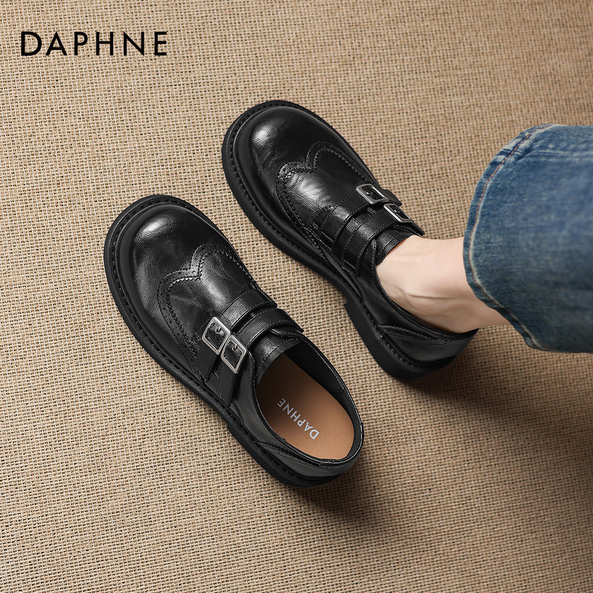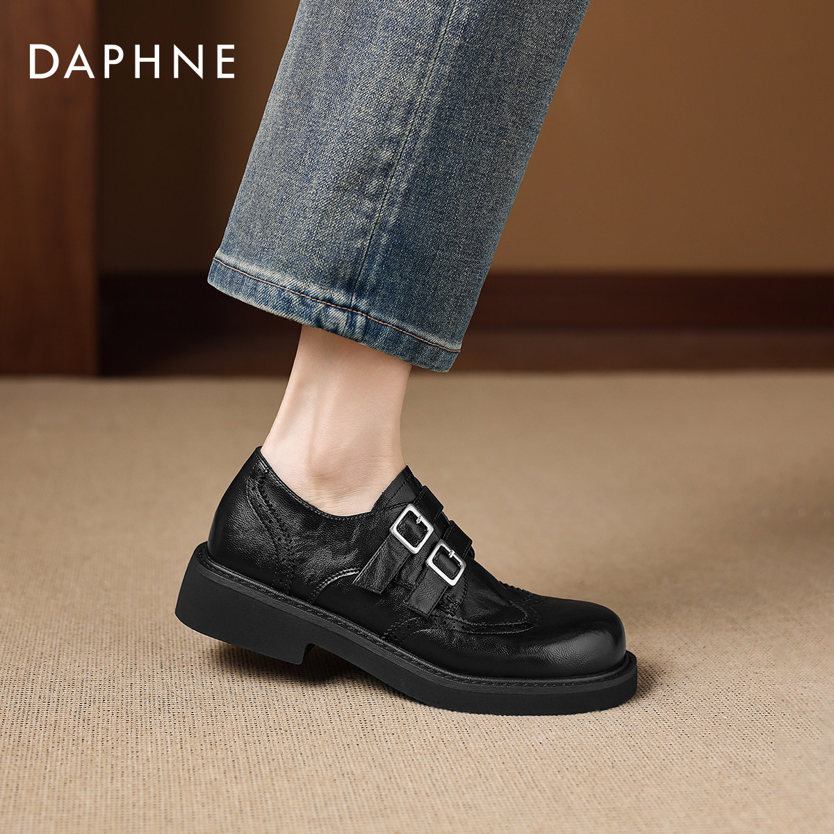 达芙妮厚底乐福鞋女2026春季新款复古英伦布洛克单鞋增高通勤皮鞋