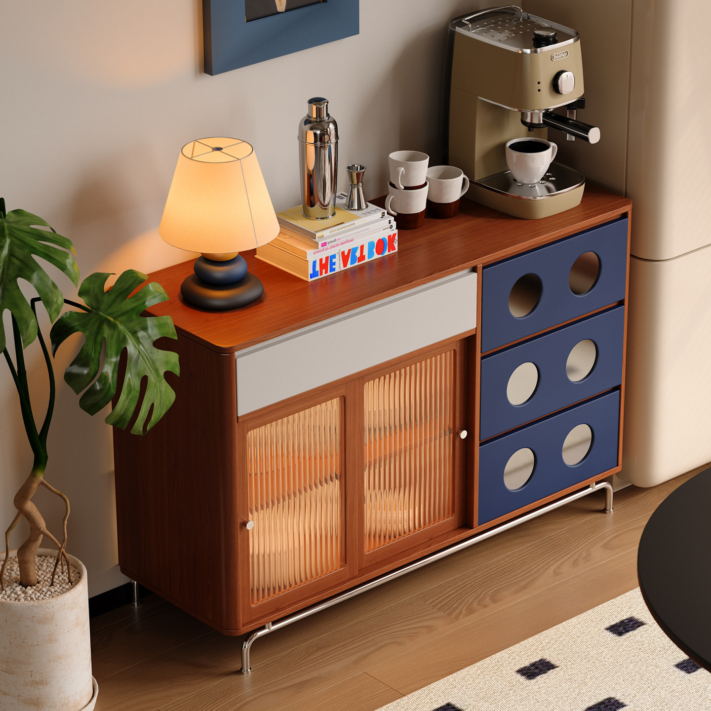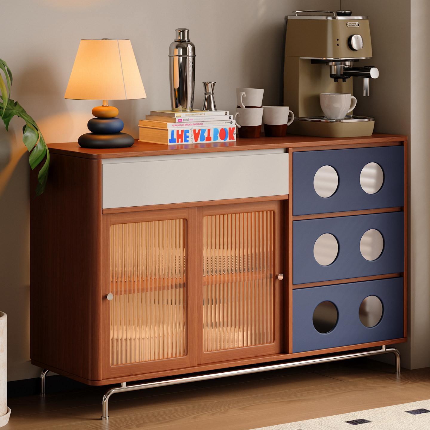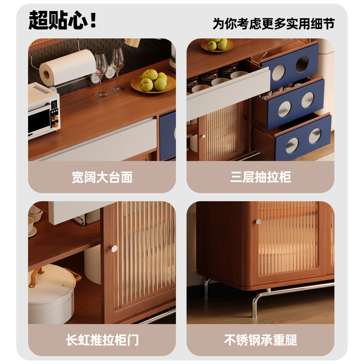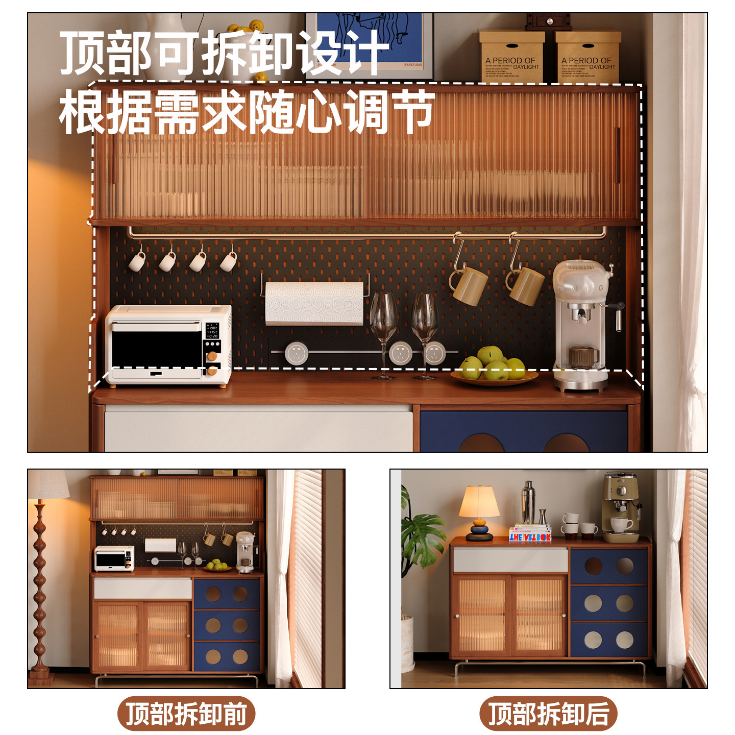 木小咖复古餐边柜靠墙一体储物柜客厅实木橱柜家用咖啡茶水柜置物
