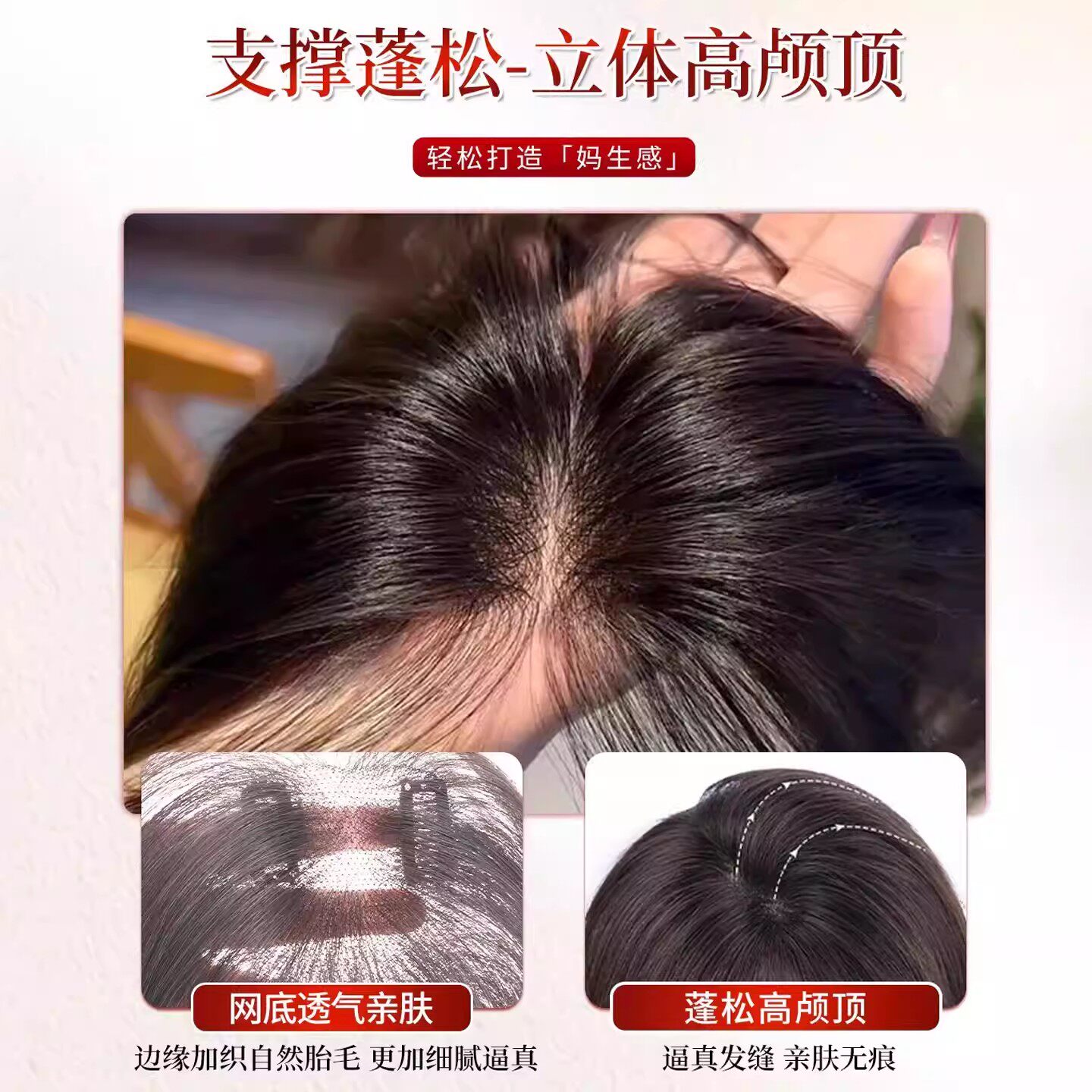 刘海假发女片头顶增发量仿真发遮白发蓬松颅顶自然前额无痕补发片