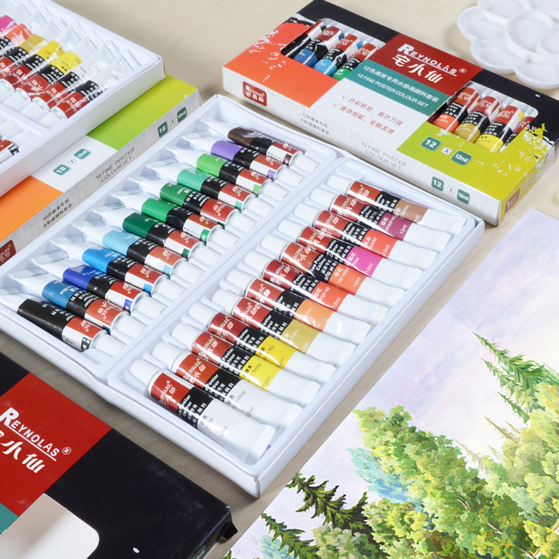 水彩颜料套装24色36色水彩画n学生手绘便携画笔12色水粉饼初学者