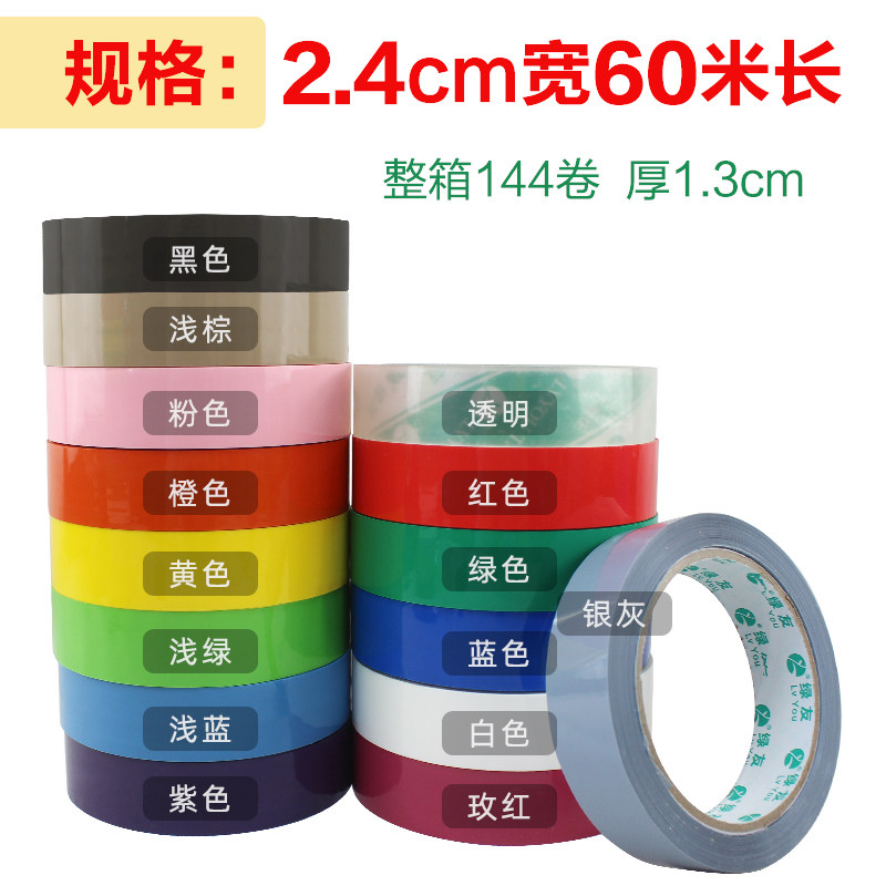 绿友粘球球胶带彩色透明窄胶带2.4cm宽粘球胶带大卷捆绑胶带
