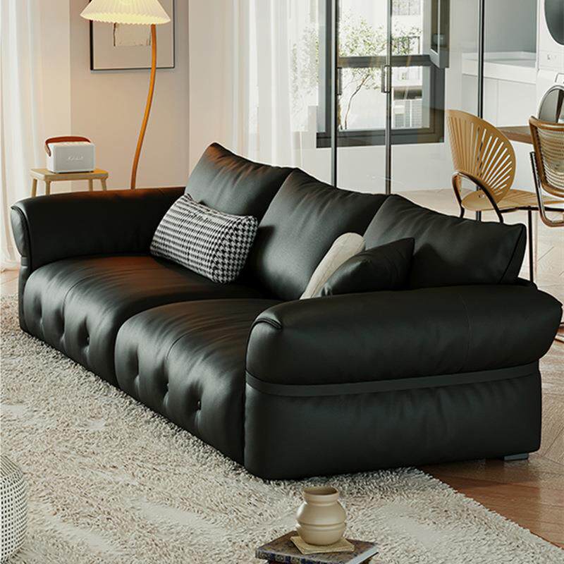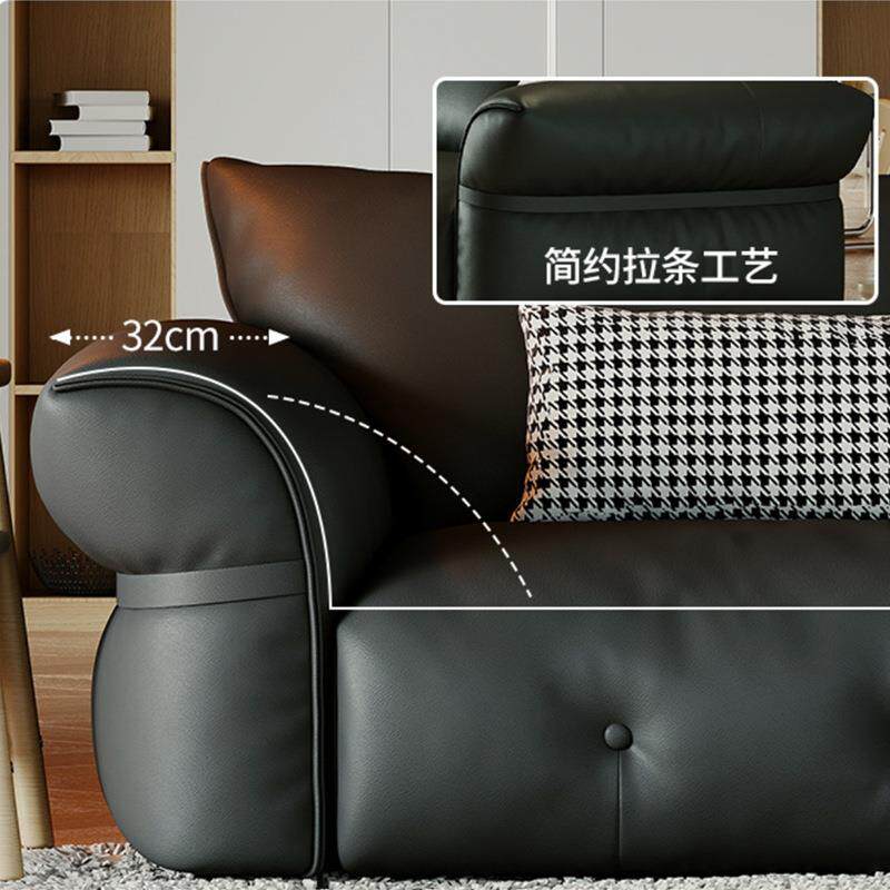 意式极简黑色云朵沙发小户型客厅民宿酒店设计师样板房皮艺三人位