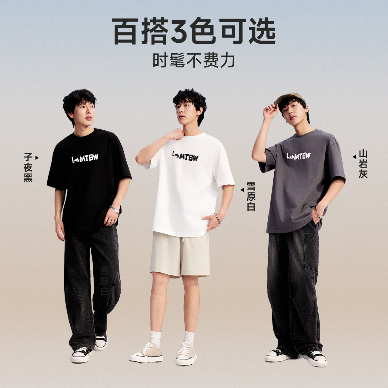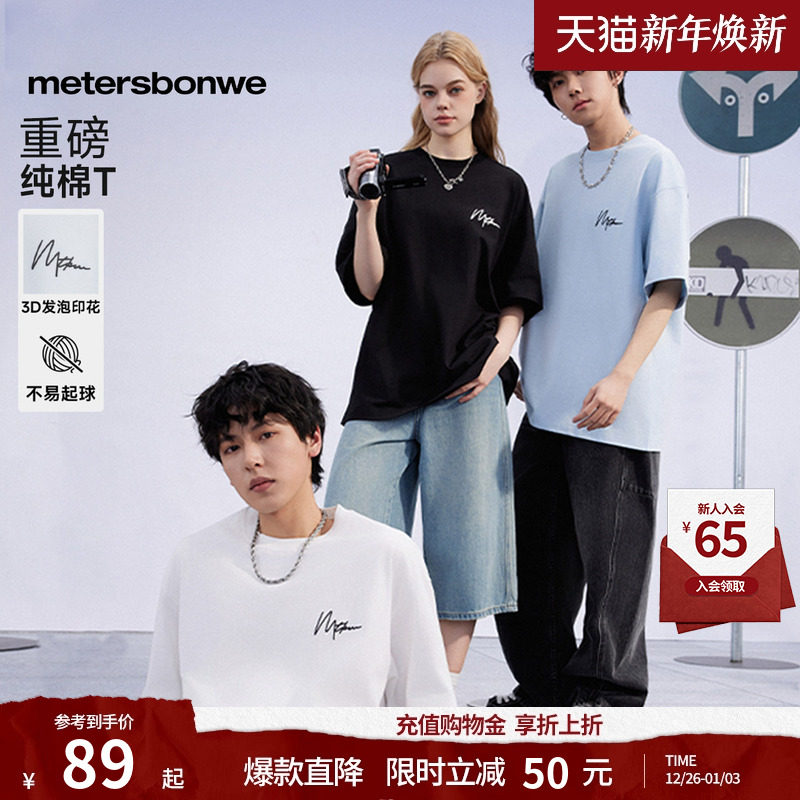 美特斯邦威短袖T恤男女同款2025秋季新款舒适宽松百搭情侣体恤ZZ