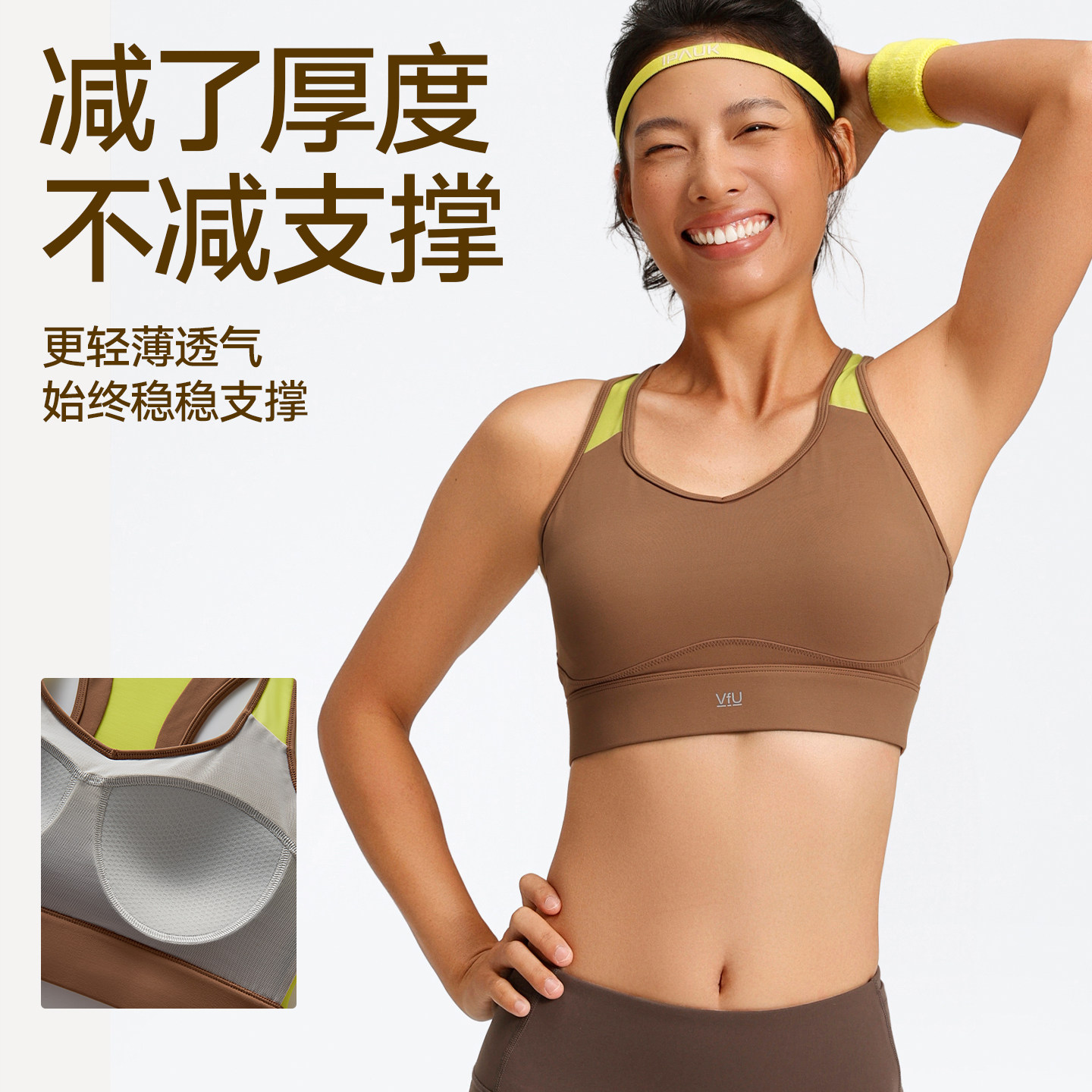 VfU贴贴杯运动内衣高强度防震一体式速干背心强支撑跑步健身文胸