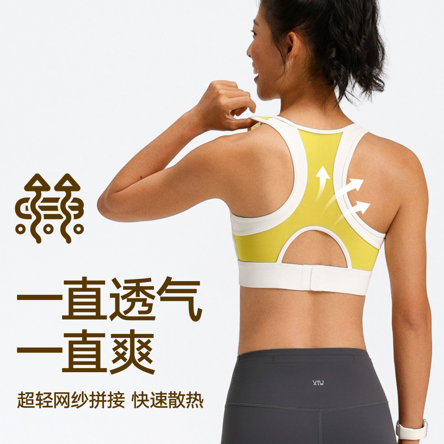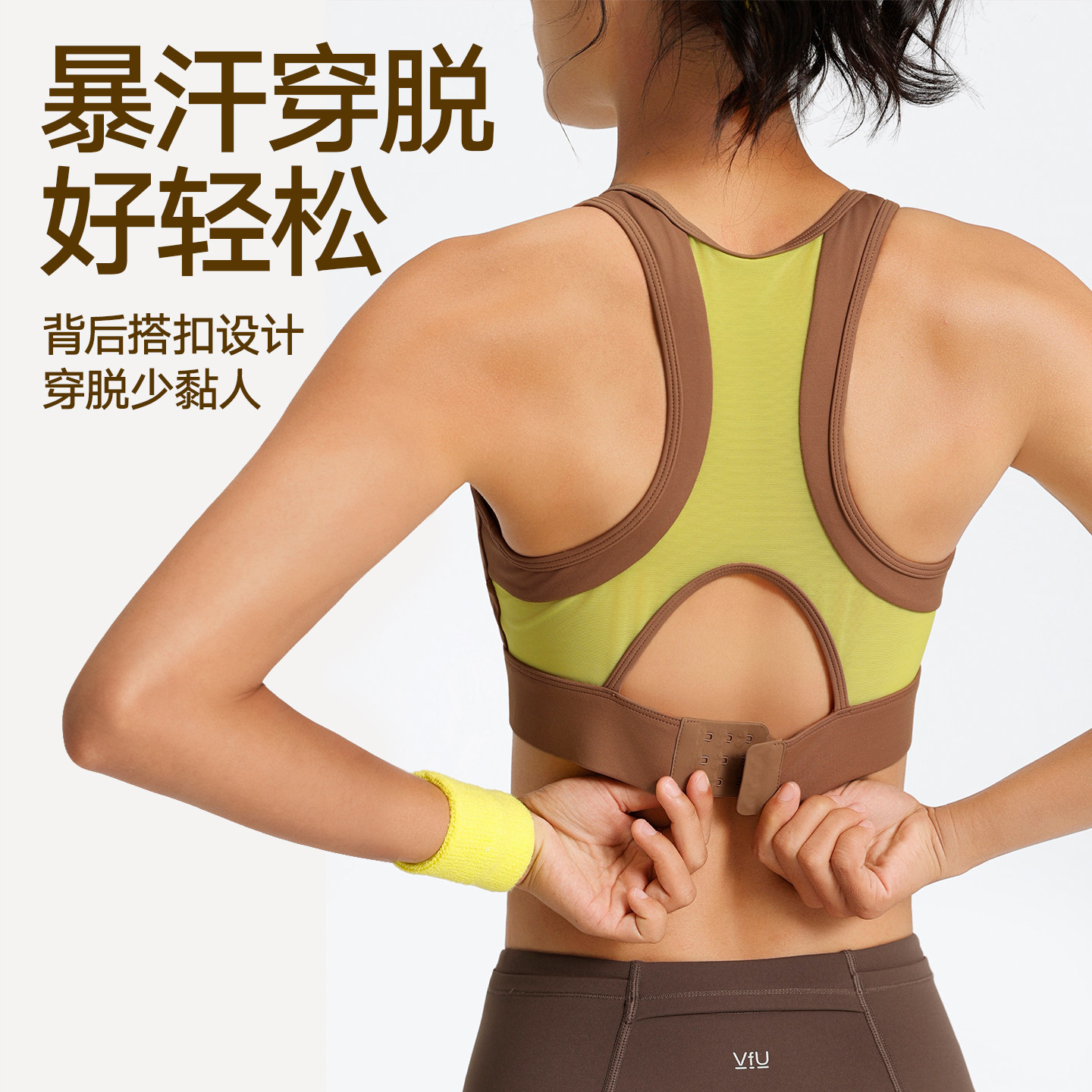 VfU高强度运动内衣防震强支撑包裹搭扣背心透气网纱健身跑步文胸