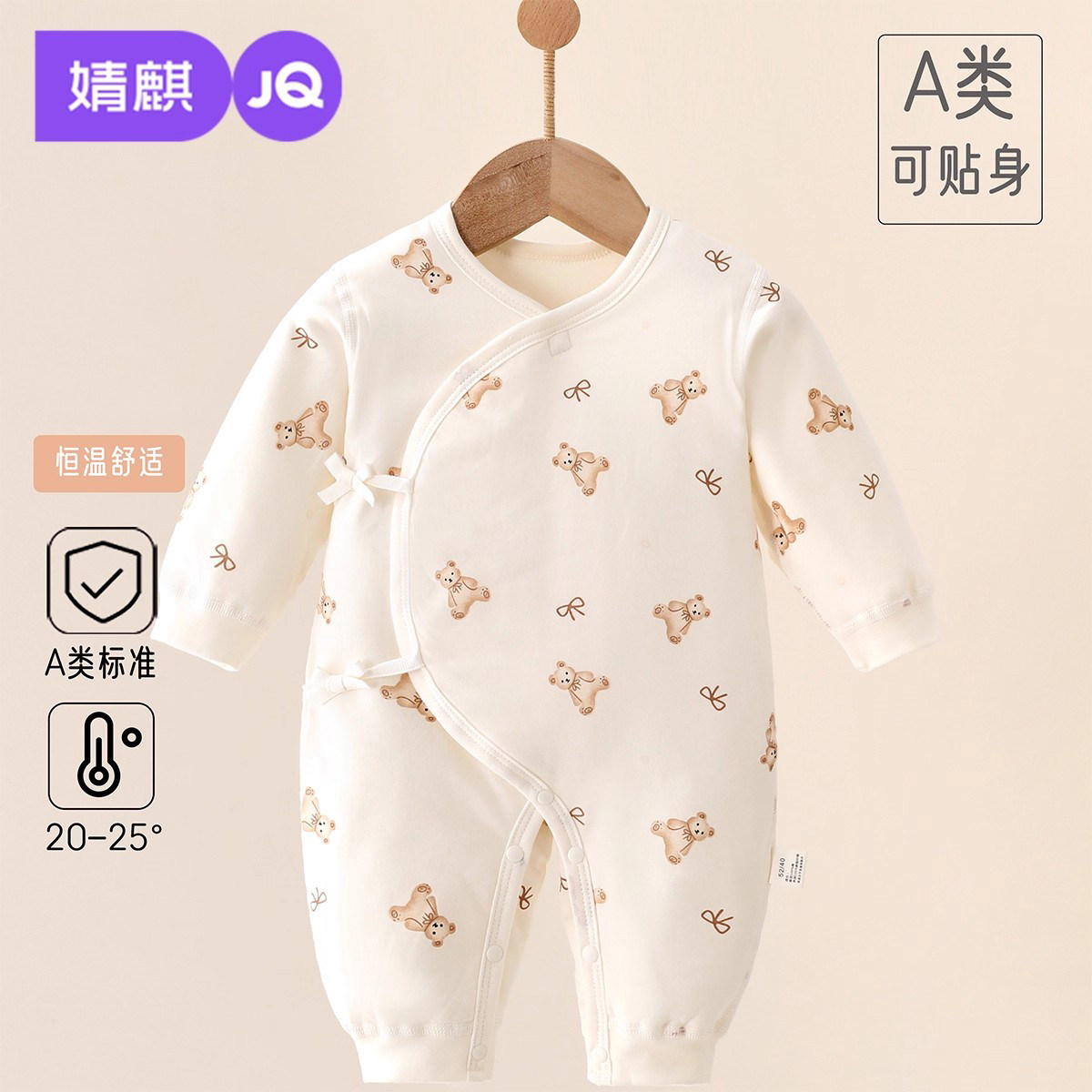 婧麒新生儿婴儿衣服秋冬夹棉满月纯棉初生宝宝秋装连体衣a类爬服