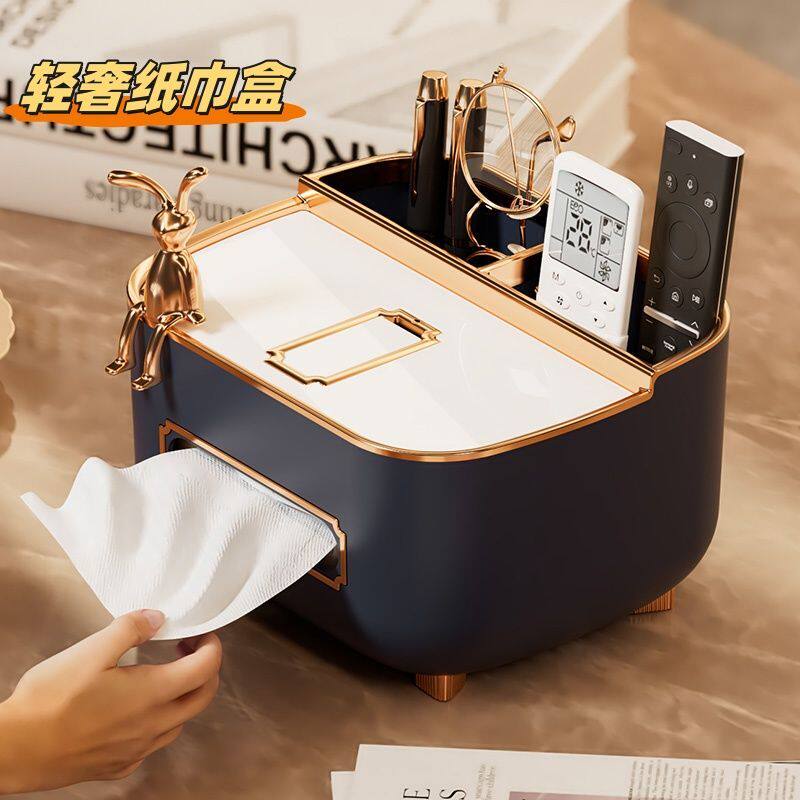 轻奢纸巾盒客厅高档纸巾盒茶几多功能遥控器收纳家用桌面创意摆件
