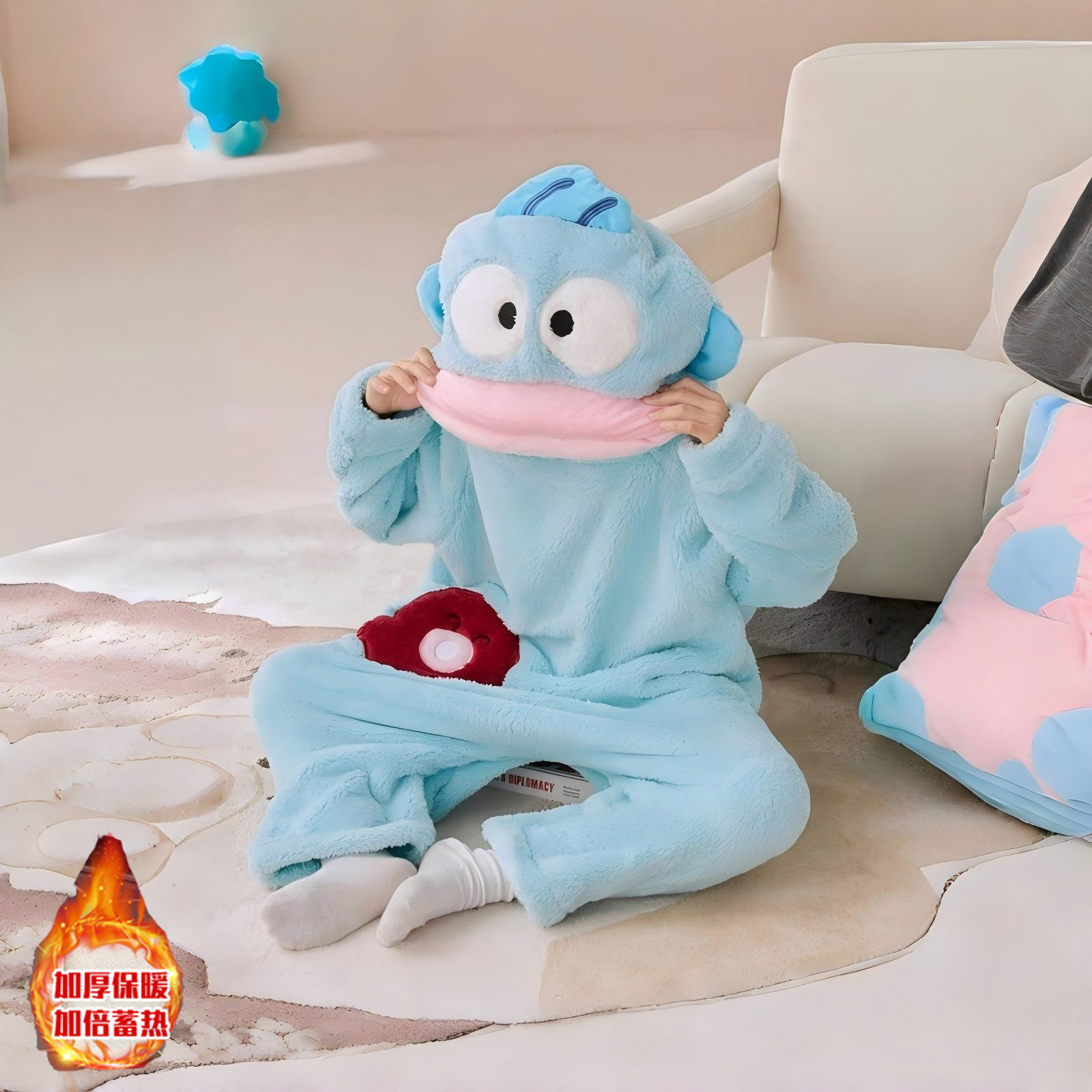 丑鱼儿童可爱搞怪连体睡衣男女亲子秋冬加绒加厚珊瑚绒卡通家居服