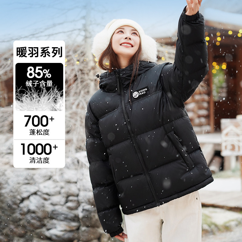 骆驼羽绒服女熊猫户外2025冬季短款巨好看的保暖面包服黑色外套