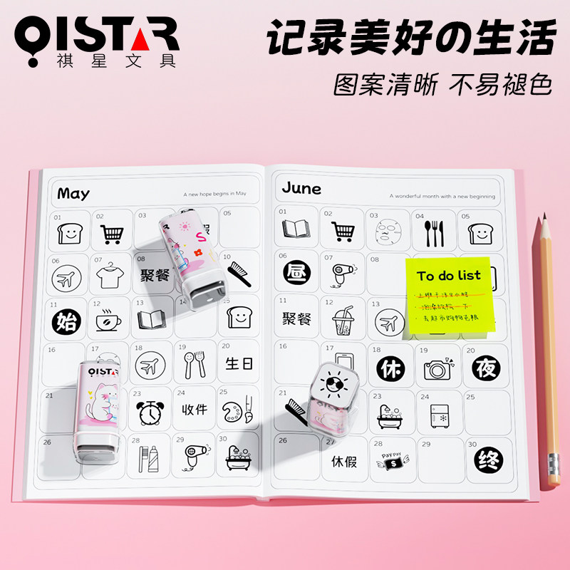 可爱手帐日本韩国日常日程购物生活学习加油美甲美容便利店看电影洗衣服面膜看电影记录计划旅游健身签到盖章