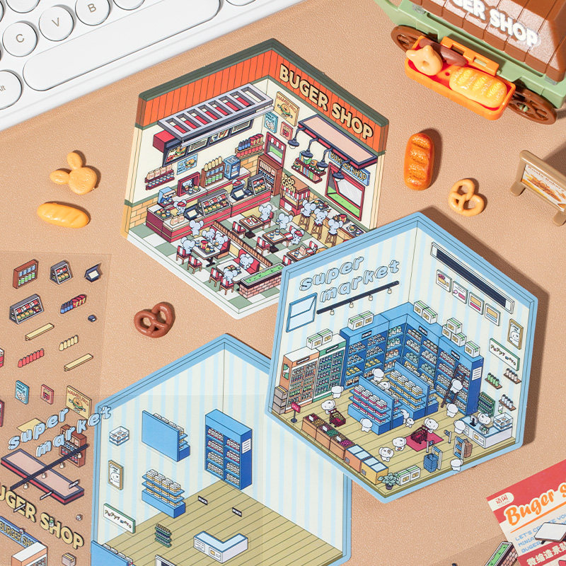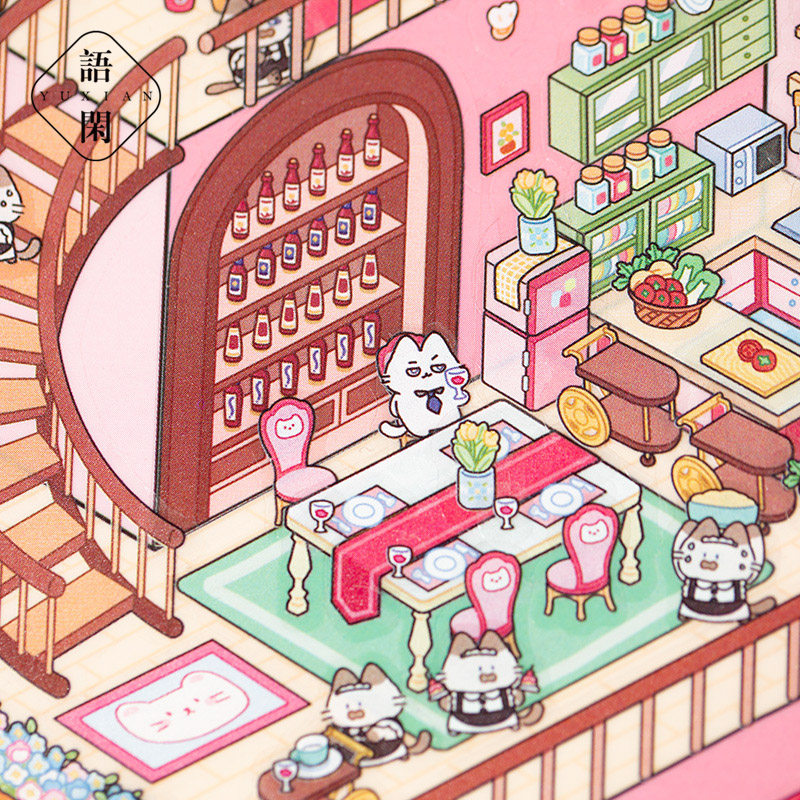 语闲幻想世界pet三层大造景贴纸立体微缩视觉3D小屋儿童手账贴画