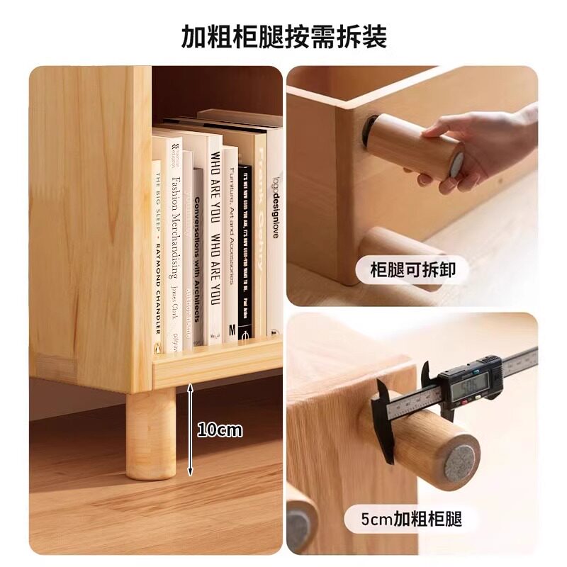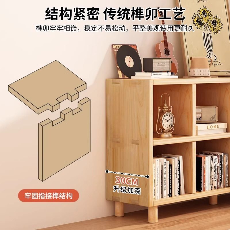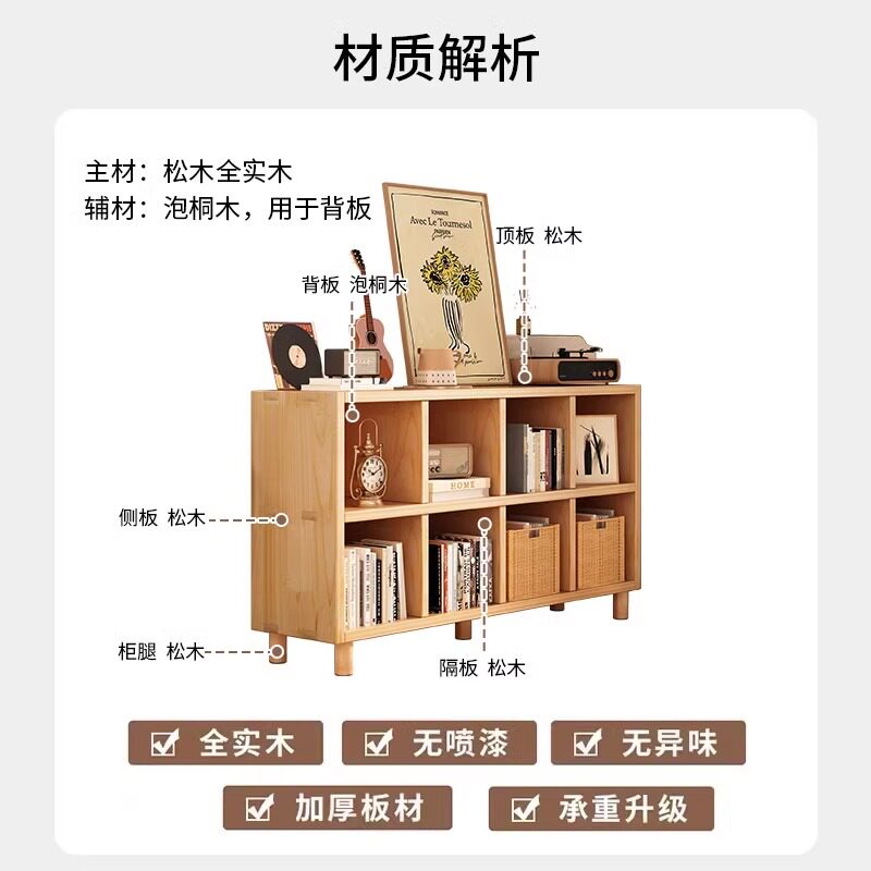 实木格子书柜落地置物架客厅自由组合多层收纳储物矮柜子书架松木